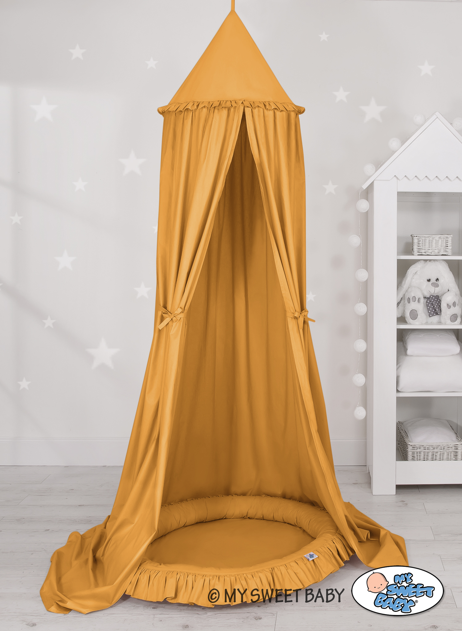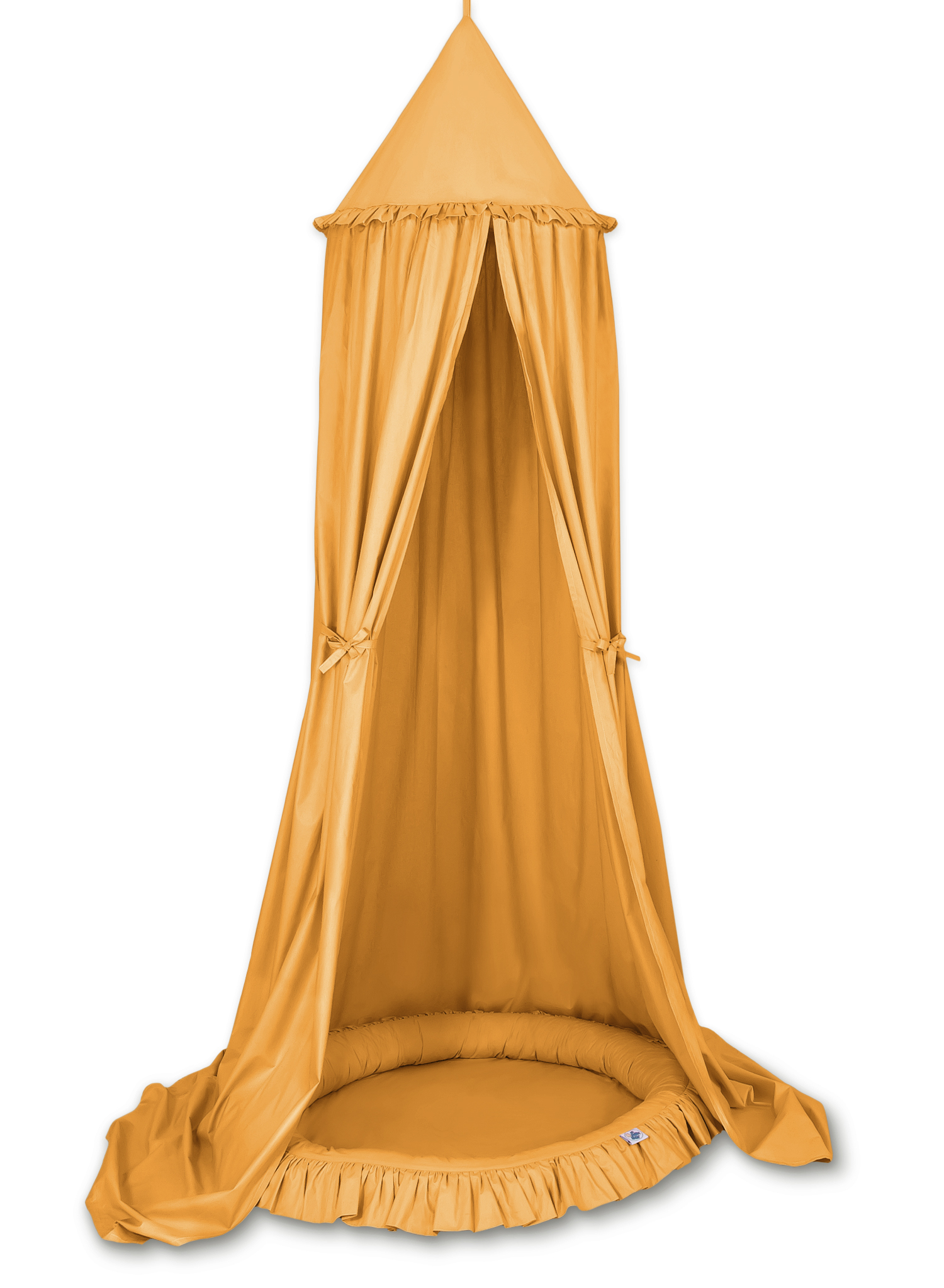 Ein effektvoller Hängehimmel für das Kinderzimmer. Unser Himmel kann als außergewöhnliche Dekoration, oder auch als ein gemütliches Spielplätzchen dienen. Über dem Kinderbett aufgehängt schützt der Himmel vor zu viel Licht und dämmt die Geräusche, so dass ein gemütlicher Ruheplatz entsteht. Der Himmel kann auch separat leicht an die Decke angebracht werden. Die Länge von 260 cm erlaubt die Enden am Boden zu drapieren. Somit entsteht ein Versteck und Spielplatz für ältere Kinder.