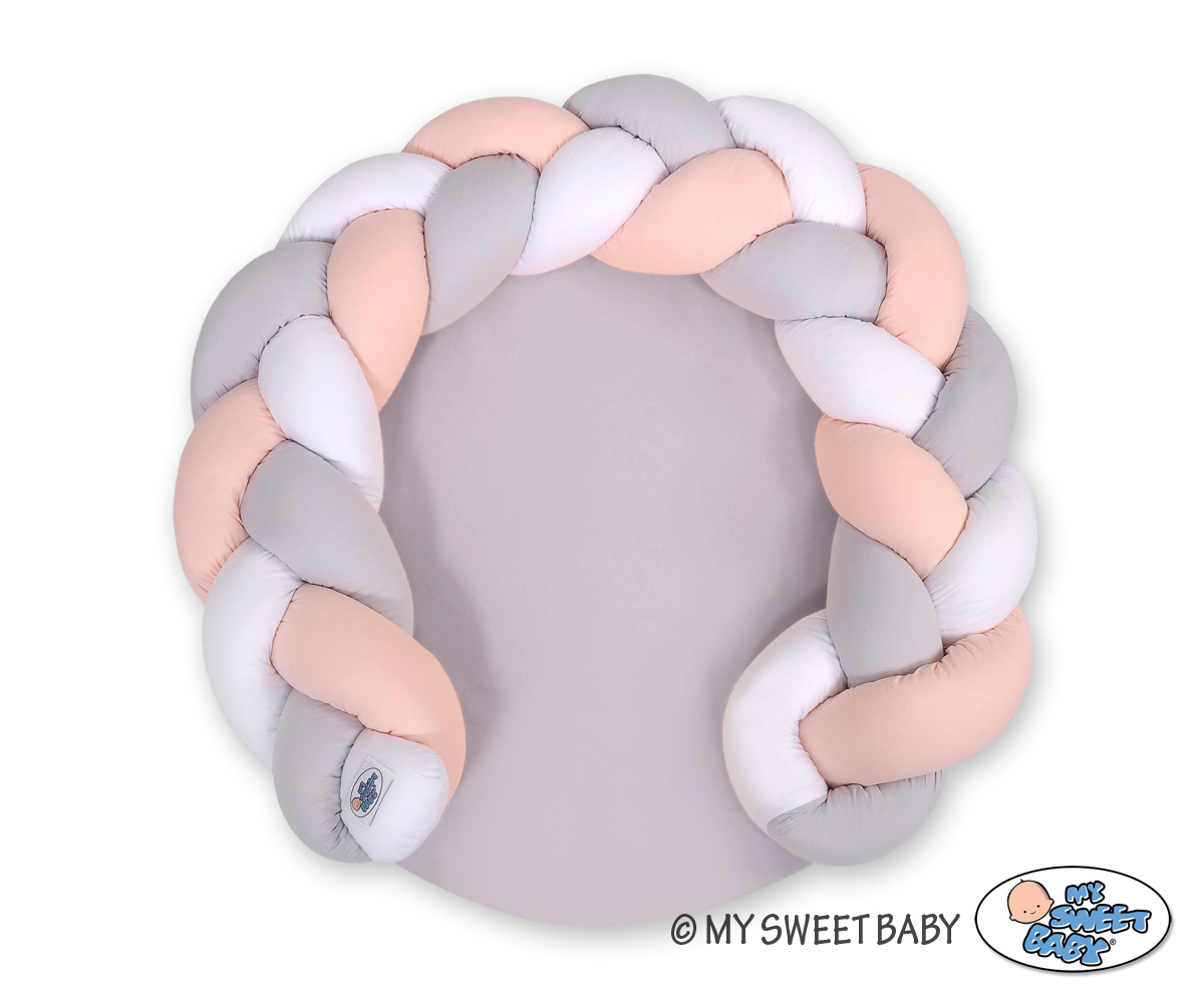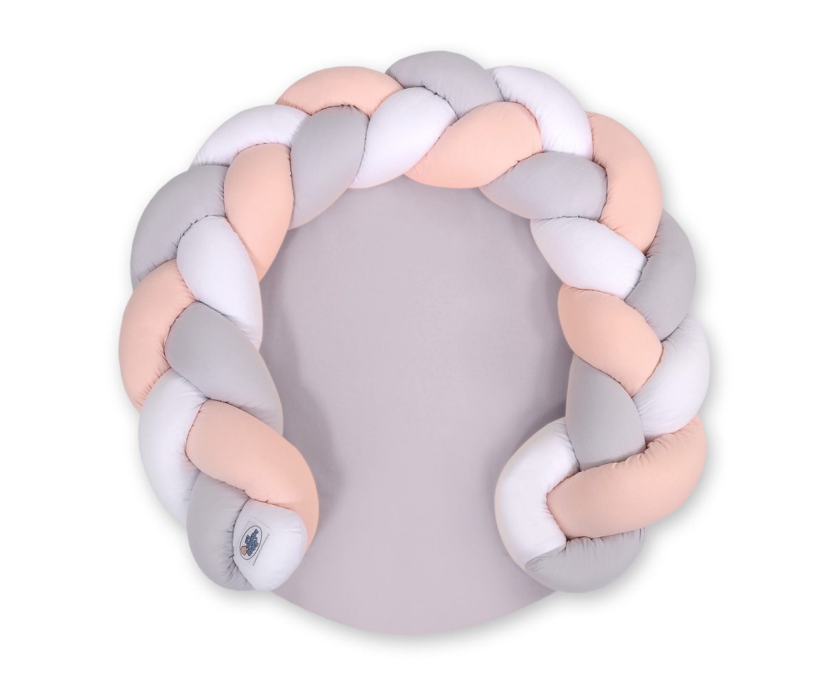 Bettschlange Geflochten / Babykokon / Spielmatte 2 in1 - weiß-puderrosa-grauBettschlange Geflochten / Babykokon / Spielmatte 2 in1 - weiß-puderrosa-grau