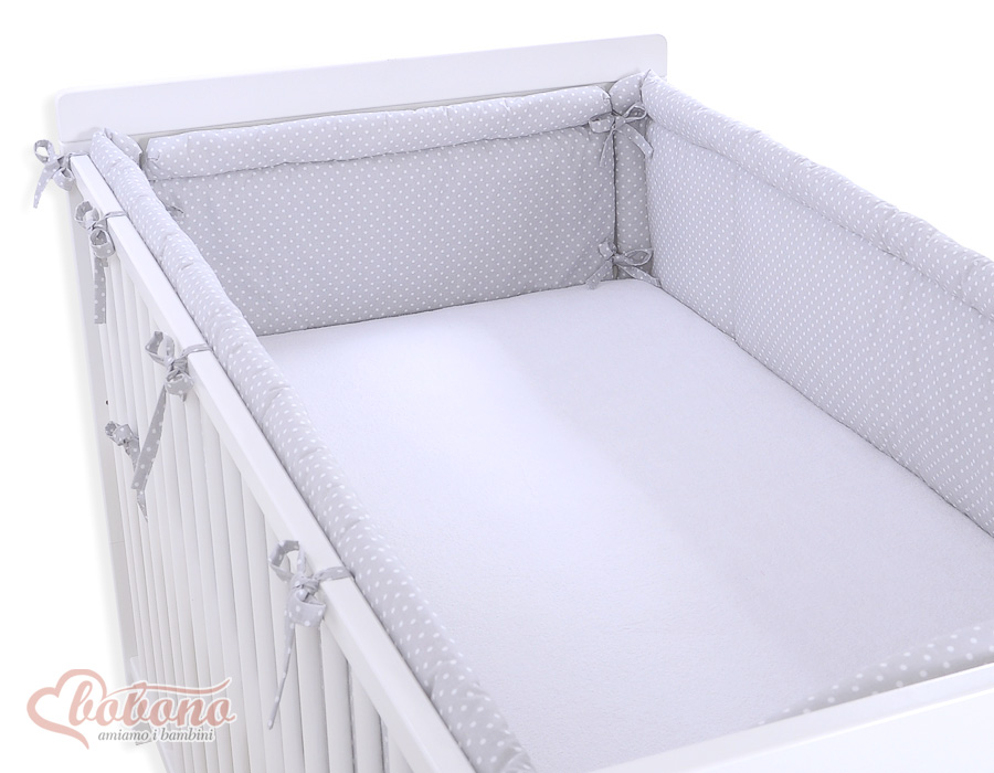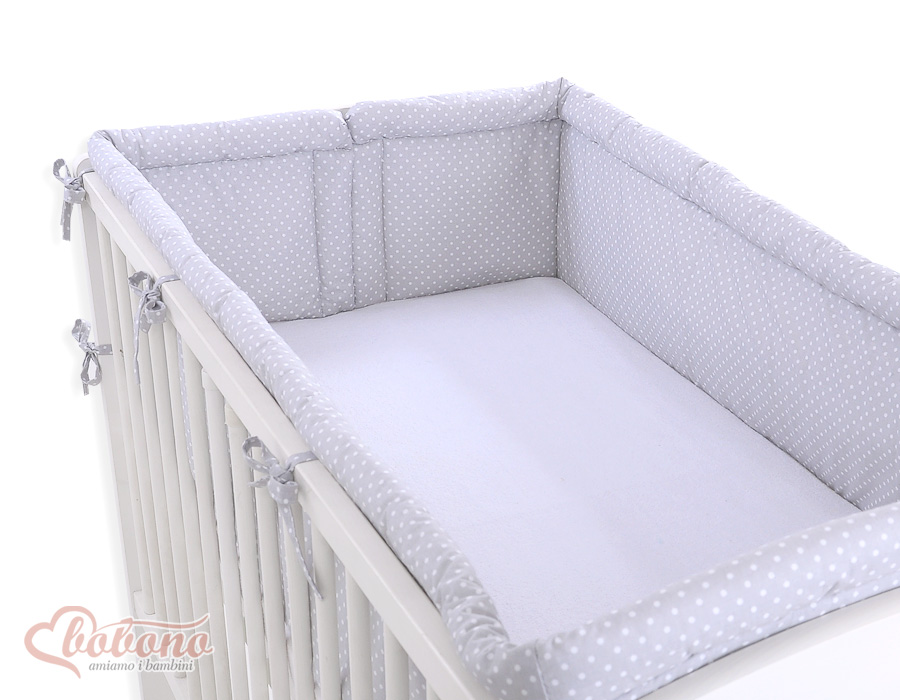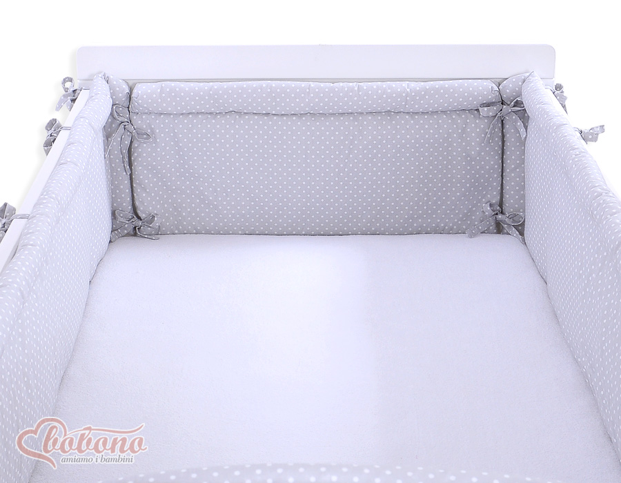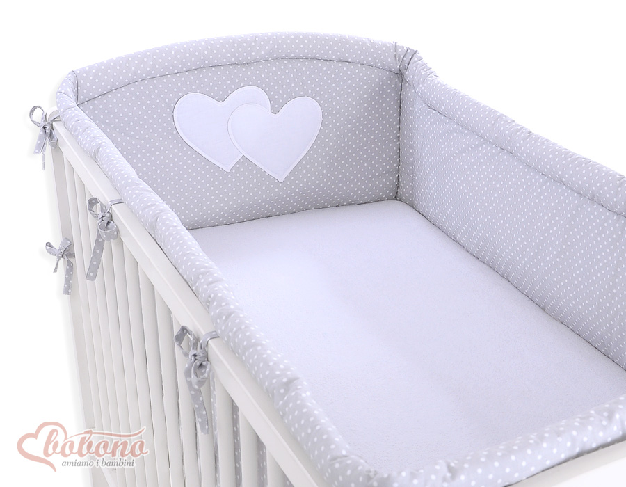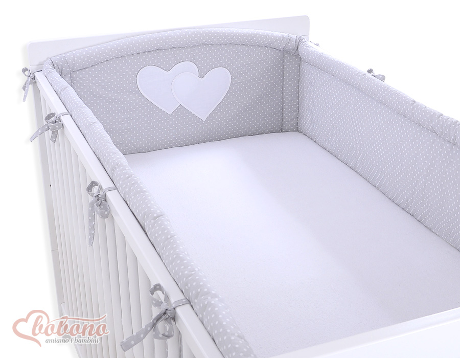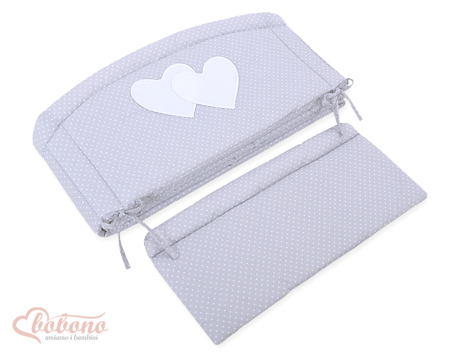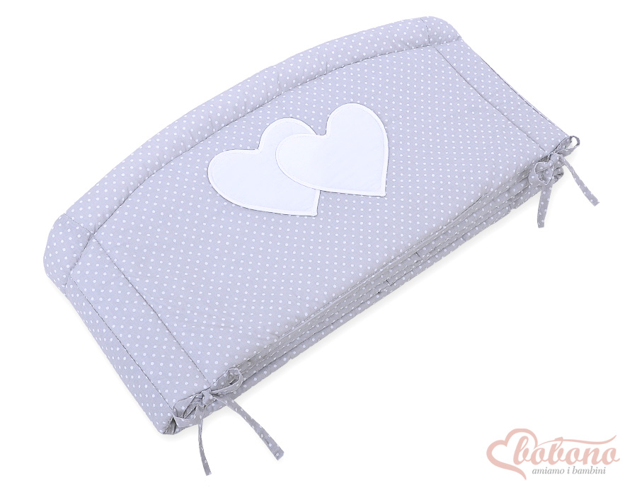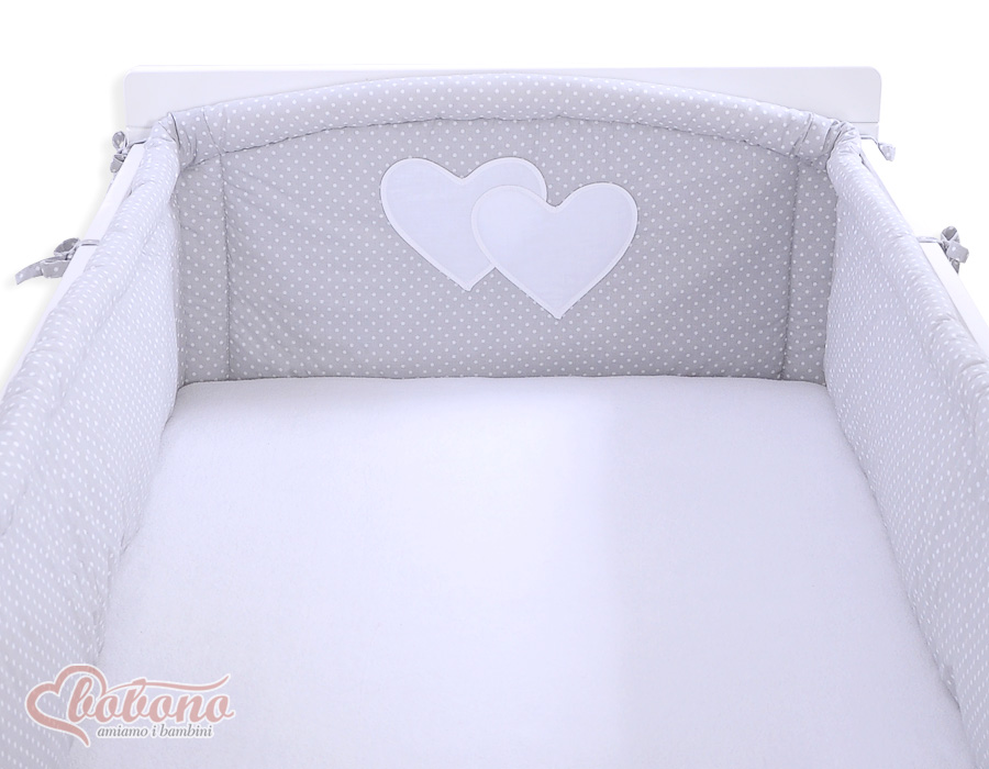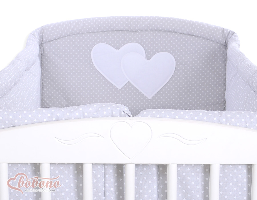 Für Kinderbett 60x120cm oder 70x140cm. Grau-Punktmuster Herzen Hängende XXL- Babybett Bettumrandung