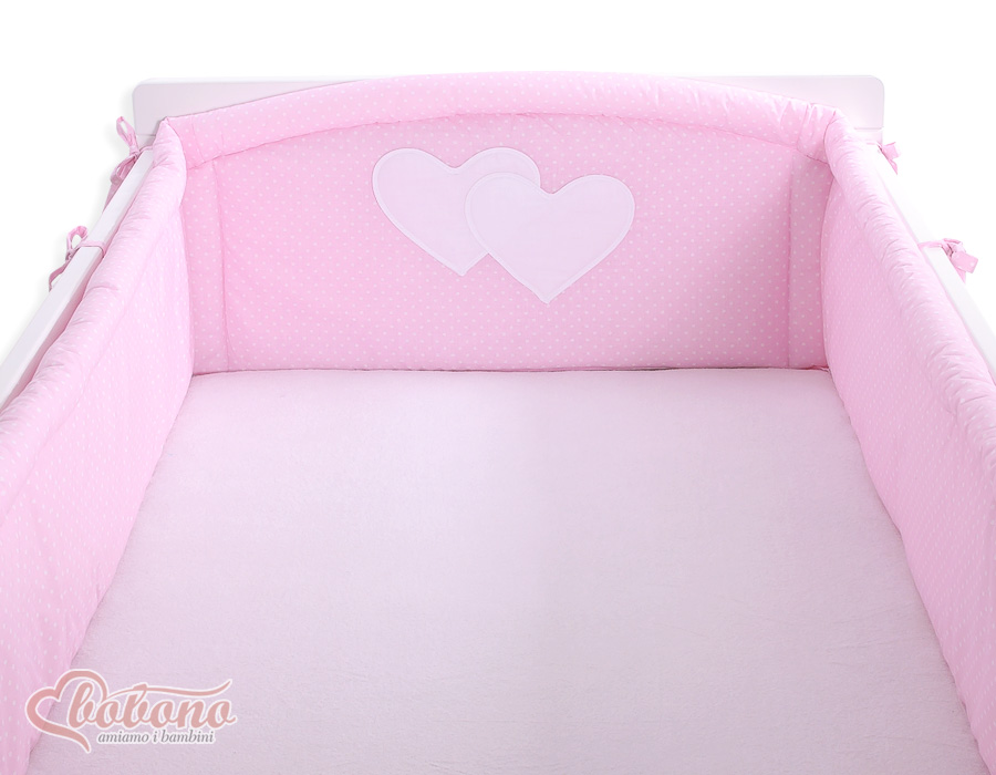 Bettumrandung XXL Babybett - Hängende Herzen Rosa-Punktmuster Ein universal, atmungsaktiver Kopfschutz XXL für Kinderbett. Schafft mit der passenden Bettwäsche eine behagliche Schlafhöhle.