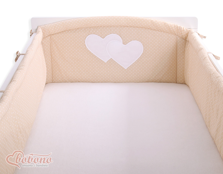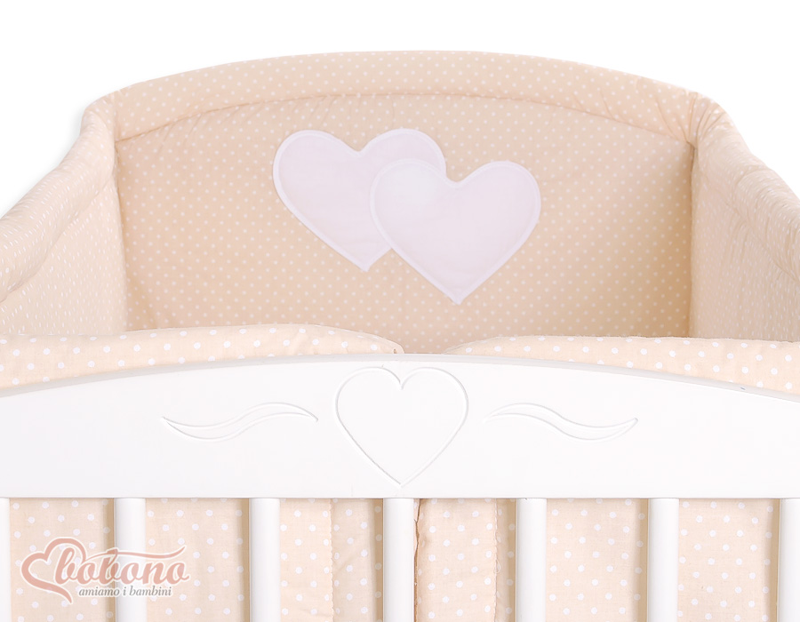 Für Kinderbett 60x120cm oder 70x140cm. Beige-Punktmuster Herzen Hängende XXL- Babybett Bettumrandung