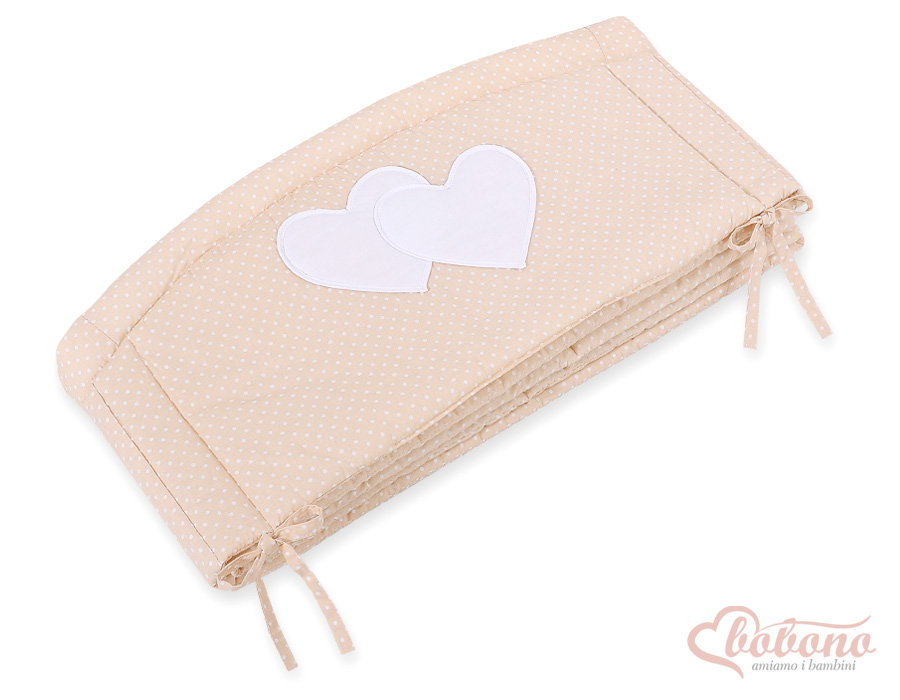 Bettumrandung Babybett XXL- Hängende Herzen Beige-Punktmuster Ein universal, atmungsaktiver Kopfschutz XXL für Kinderbett. Schafft mit der passenden Bettwäsche eine behagliche Schlafhöhle.