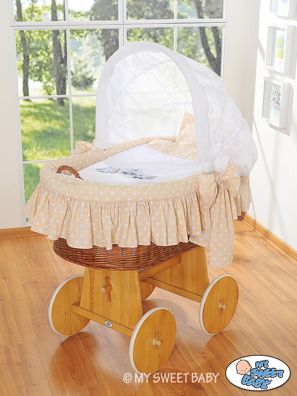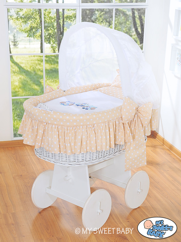 Stubenwagen » Stubenwagen » Stubenwagen mit Haube » Bettwäsche 2-tlg » Bettwäsche für Stubenwagen mit Stickerei Eulen Beige Punktemuster
