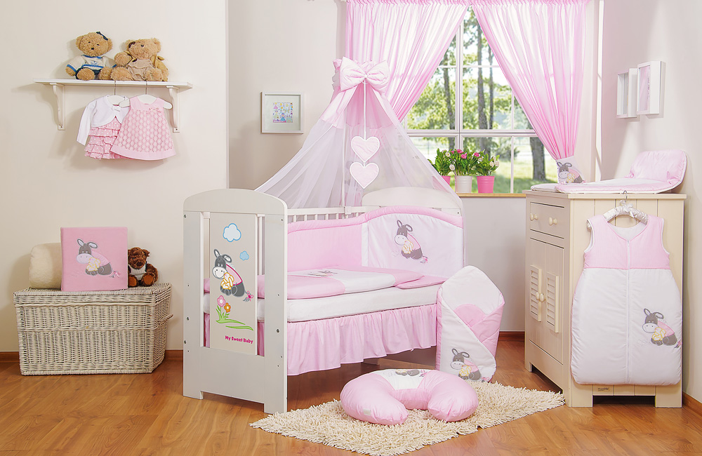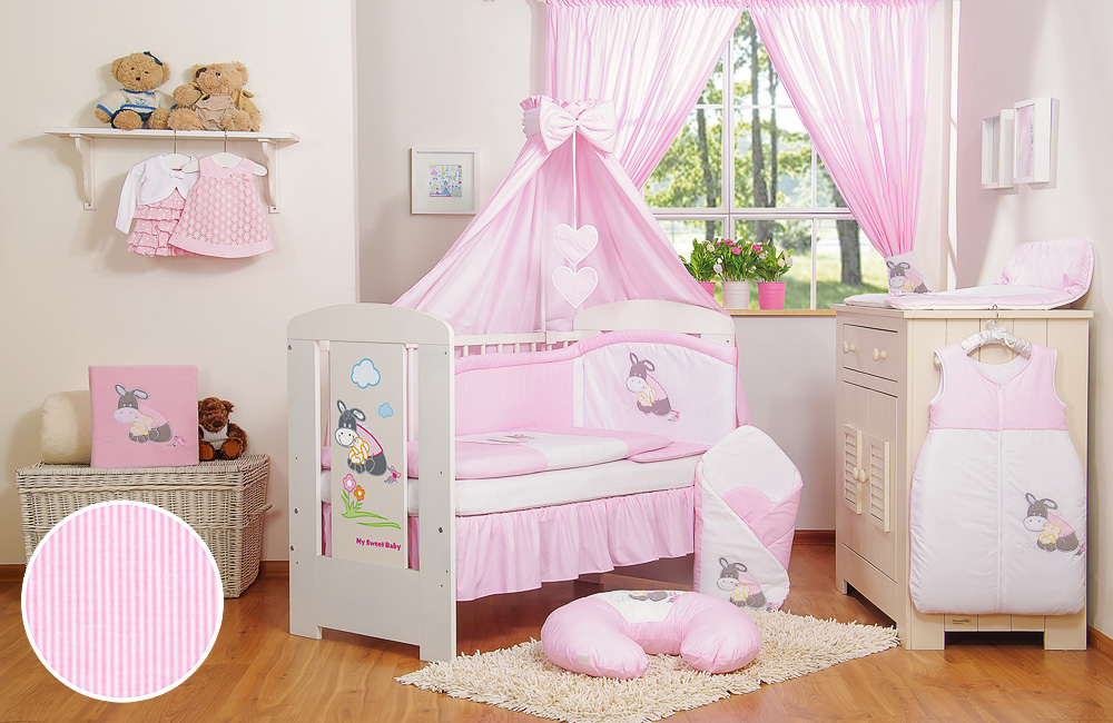 Stubenwagen » Bettwäsche für Babys » Bettwäsche für Babybett ESEL LUCA » Bettwäsche Sets für Babybett 120cm » Bedding Set 11-pcs with canopy » Bettwäsche Set 11-tlg mit Himmel - Esel Luca rosa