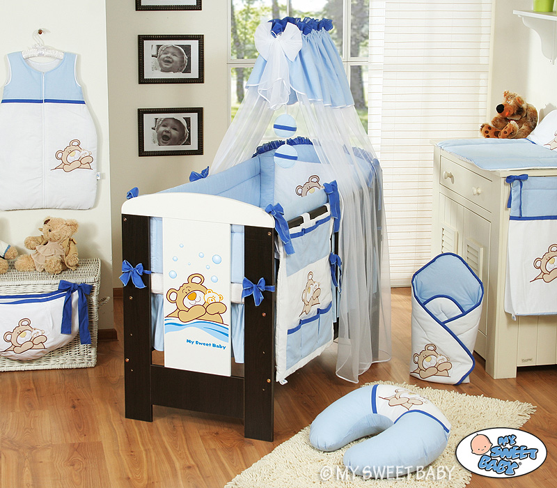 Stubenwagen » Bettwäsche für Babys » Bettwäsche für Babybett TEDDY BÄR BARNABA » Bettwäsche Sets für Babybett 120cm » Bettwäsche Set 11-tlg mit Himmel (L) » Bettwäsche Set 11-tlg mit Himmel (L60) - Teddy Bär Barnaba blue