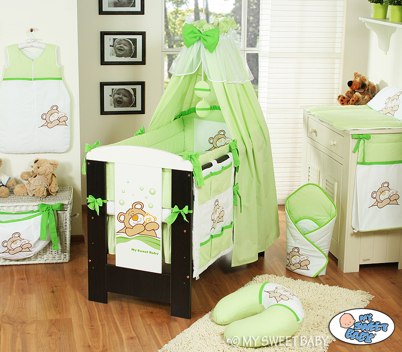 Stubenwagen » Bettwäsche für Babys » Bettwäsche für Babybett TEDDY BÄR BARNABA » Bettwäsche Sets für Babybett 120cm » Bettwäsche Set 11-tlg mit Himmel (L) » Bettwäsche Set 11-tlg mit Himmel (L60) - Teddy Bär Barnaba grün
