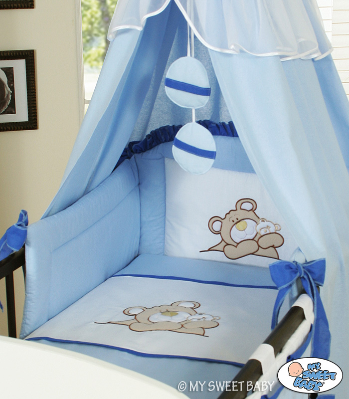 Stubenwagen » Bettwäsche für Babys » Bettwäsche für Babybett TEDDY BÄR BARNABA » Bettwäsche Sets für Babybett 120cm » Bettwäsche Set 11-tlg mit Himmel (S) » Bettwäsche Set 11-tlg mit Himmel (S60) - Teddy Bär Barnaba blue