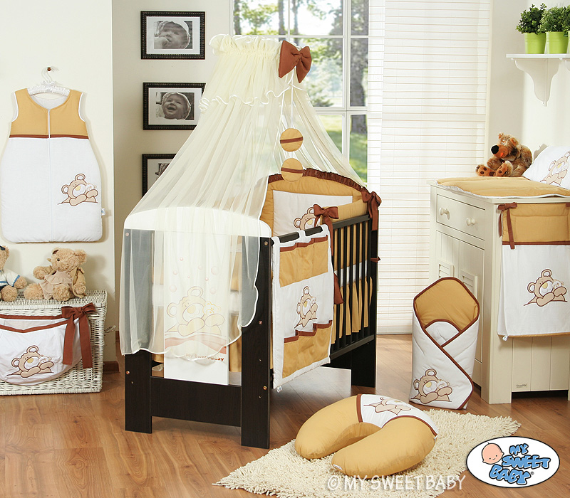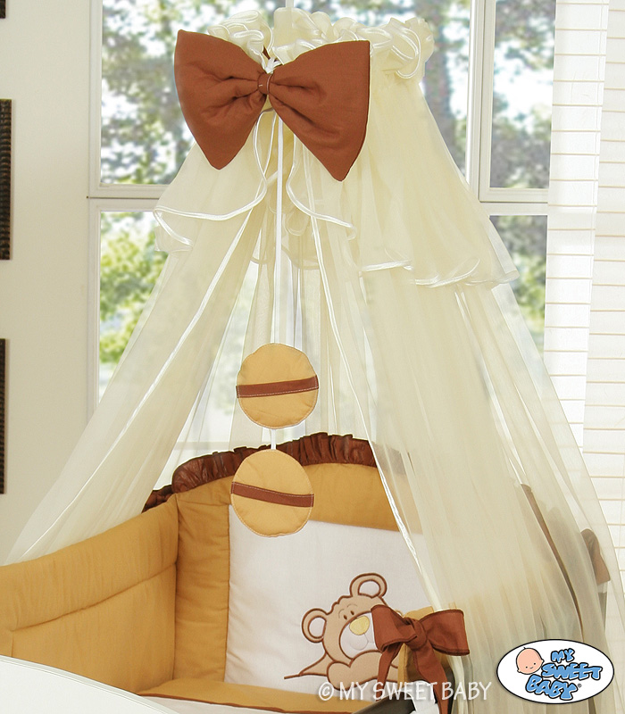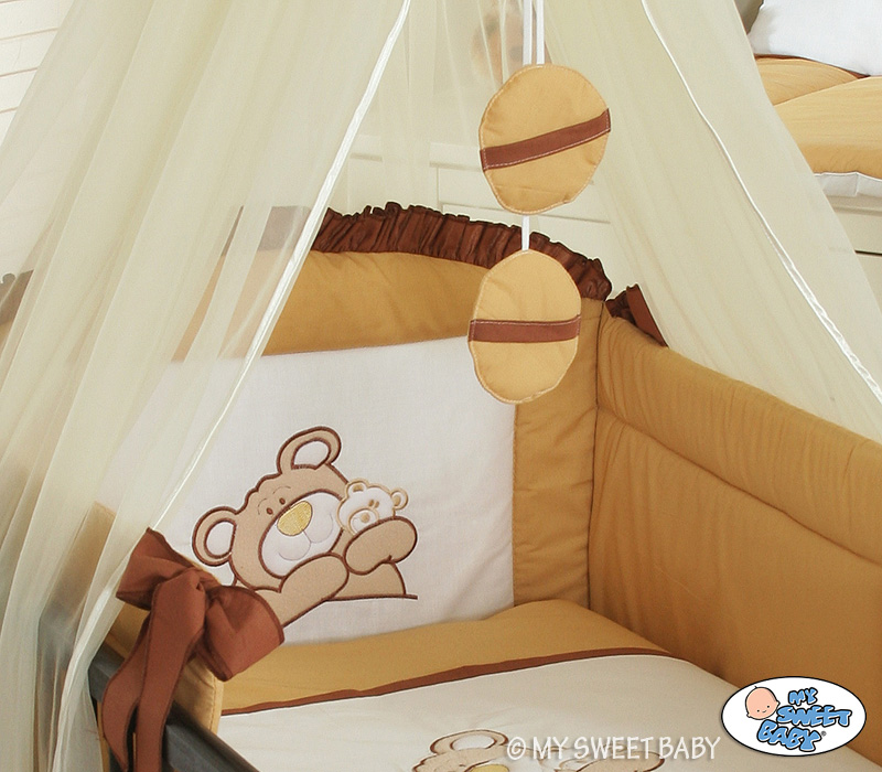 Stubenwagen » Bettwäsche für Babys » Bettwäsche für Babybett TEDDY BÄR BARNABA » Bettwäsche Sets für Babybett 120cm » Bettwäsche Set 11-tlg mit Moskitonetz (S) » Bettwäsche Set 11-tlg mit Moskitoentz (S60) - Teddy Bär Barnaba braun
