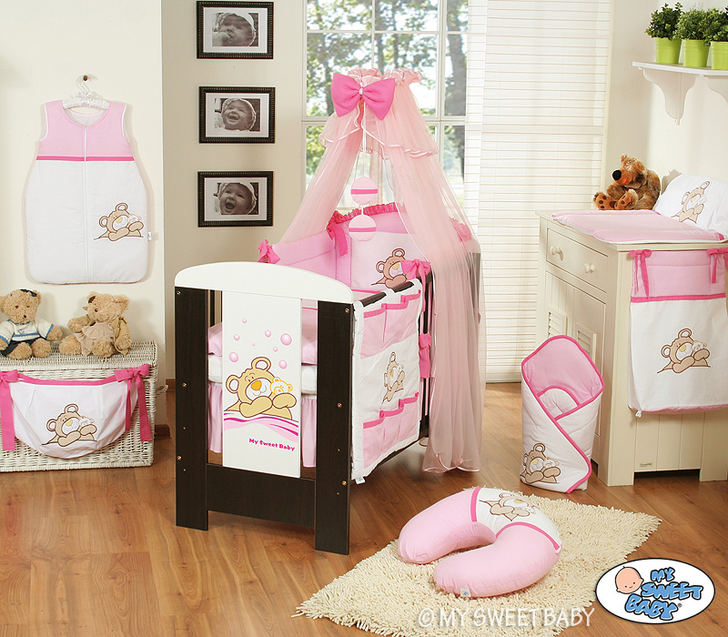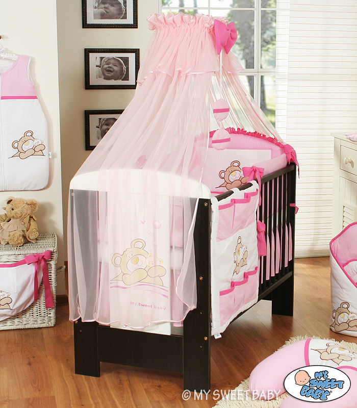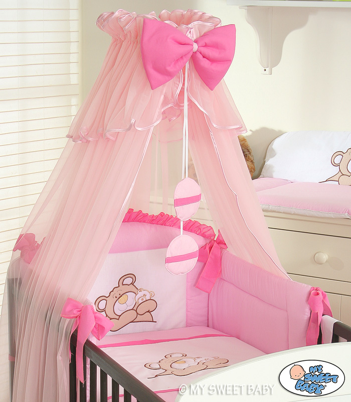 Stubenwagen » Bettwäsche für Babys » Bettwäsche für Babybett TEDDY BÄR BARNABA » Bettwäsche Sets für Babybett 120cm » Bettwäsche Set 11-tlg mit Moskitonetz (S) » Bettwäsche Set 11-tlg mit Moskitoentz (S60) - Teddy Bär Barnaba rosa