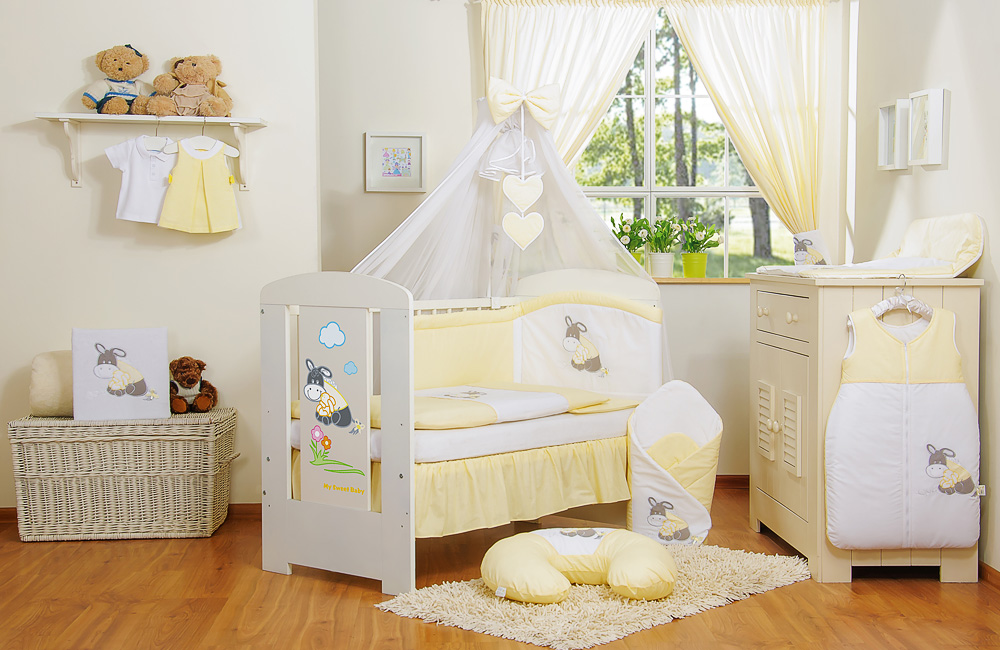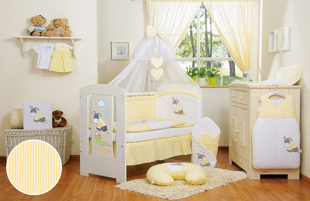 Stubenwagen » Bettwäsche für Babys » Bettwäsche für Babybett ESEL LUCA » Bettwäsche Sets für Babybett 120cm » Bedding Set 11-pcs mit Moskitonetz » Bettwäsche Set 11-tlg mit Moskitonetz - Esel Luca gelb
