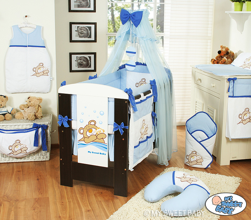 Stubenwagen » Bettwäsche für Babys » Bettwäsche für Babybett TEDDY BÄR BARNABA » Bettwäsche Sets für Babybett 140cm » Bettwäsche Set 11-tlg mit Moskitonetz (L) » Bettwäsche Set 11-tlg mit Moskitonetz (L70) - Teddy Bär Barnaba blau