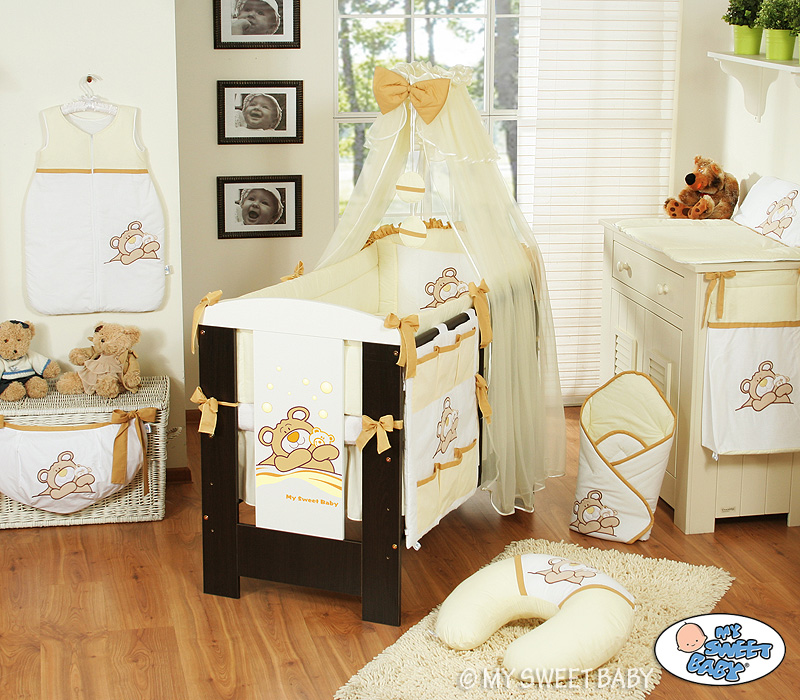 Stubenwagen » Bettwäsche für Babys » Bettwäsche für Babybett TEDDY BÄR BARNABA » Bettwäsche Sets für Babybett 140cm » Bettwäsche Set 11-tlg mit Moskitonetz (L) » Bettwäsche Set 11-tlg mit Moskitonetz (L70) - Teddy Bär Barnaba creme