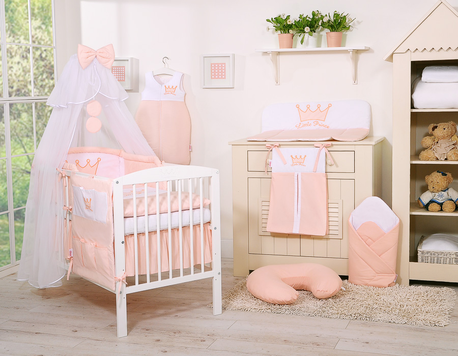 Bettwäsche Set 11-tlg mit Moskitonetz - Little Prince/Princess puderrosa