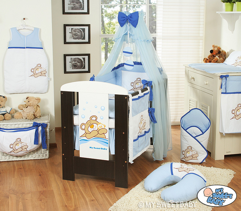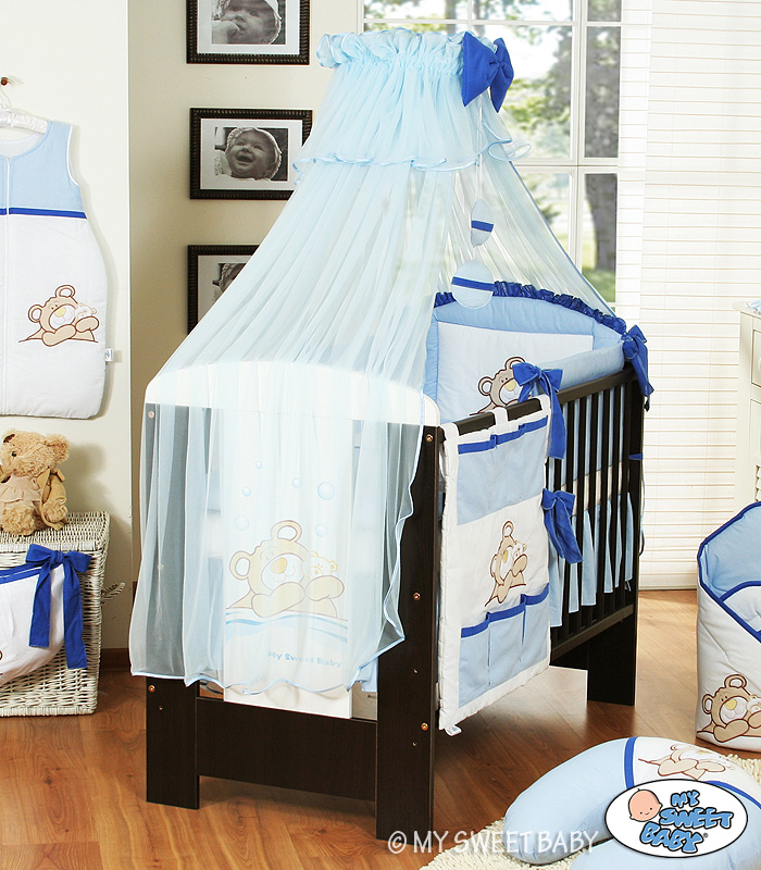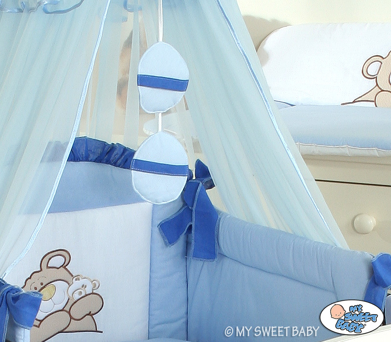 Stubenwagen » Bettwäsche für Babys » Bettwäsche für Babybett TEDDY BÄR BARNABA » Bettwäsche Sets für Babybett 120cm » Bettwäsche Set 11-tlg mit Moskitonetz (S) » Bettwäsche Set 11-tlg mit Moskitonetz (S60) - Teddy Bär Barnaba blau