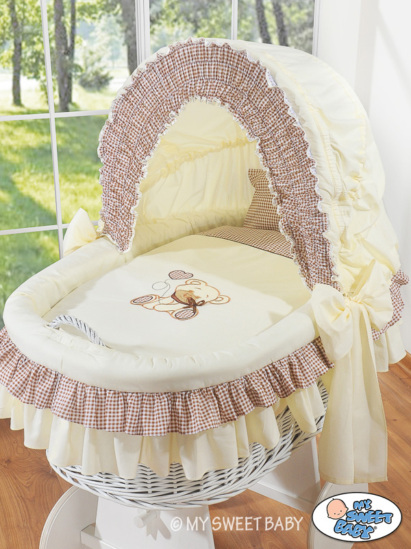 Bettwäsche Set 2-tlg für Stubenwagen mit Stickerei Bär mit Schleife Beige BraunBettwäsche Set 2-tlg für Stubenwagen mit Stickerei Bär mit Schleife Beige Braun