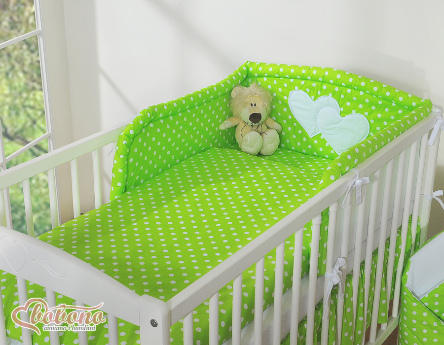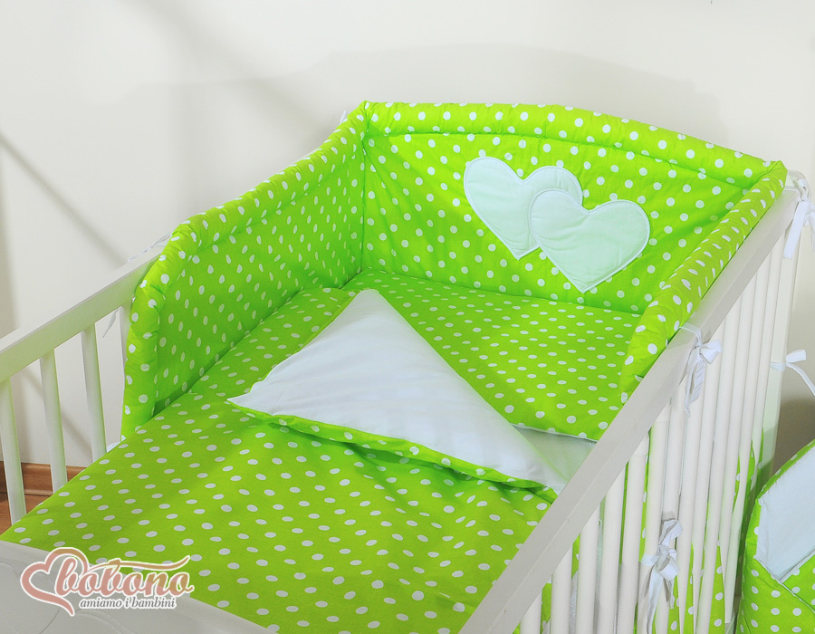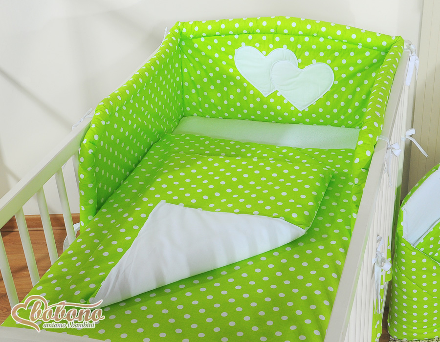 Stubenwagen » Bettwäsche für Babys » Bettwäsche für Babybett HERZEN » Bettwäsche Sets für Babybett 120cm » Bettwäsche für Babys 2-tlg » Bettwäsche Set 2-tlg Kinderbett 60x120cm und 70x140cm - Hängende Herzen Grün-Punktemuster