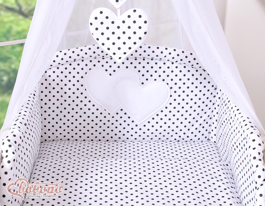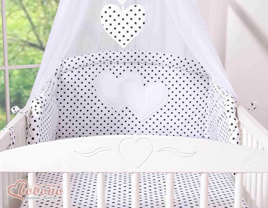 Babybettwäsche Set 5-tlg mit Himmel - Hängende Herzen Schwarz-Punktemuster