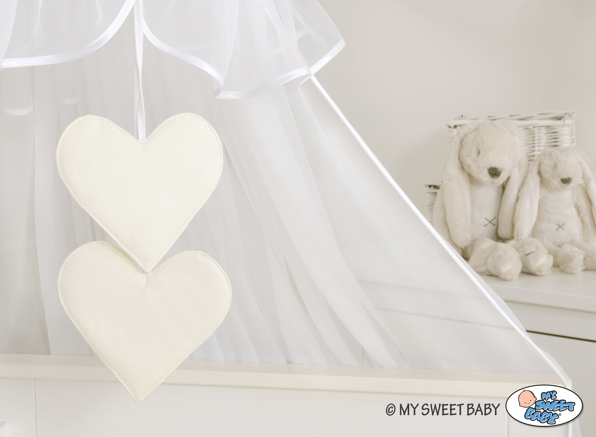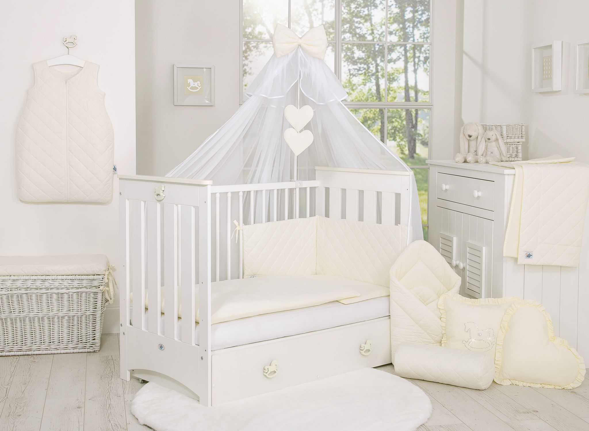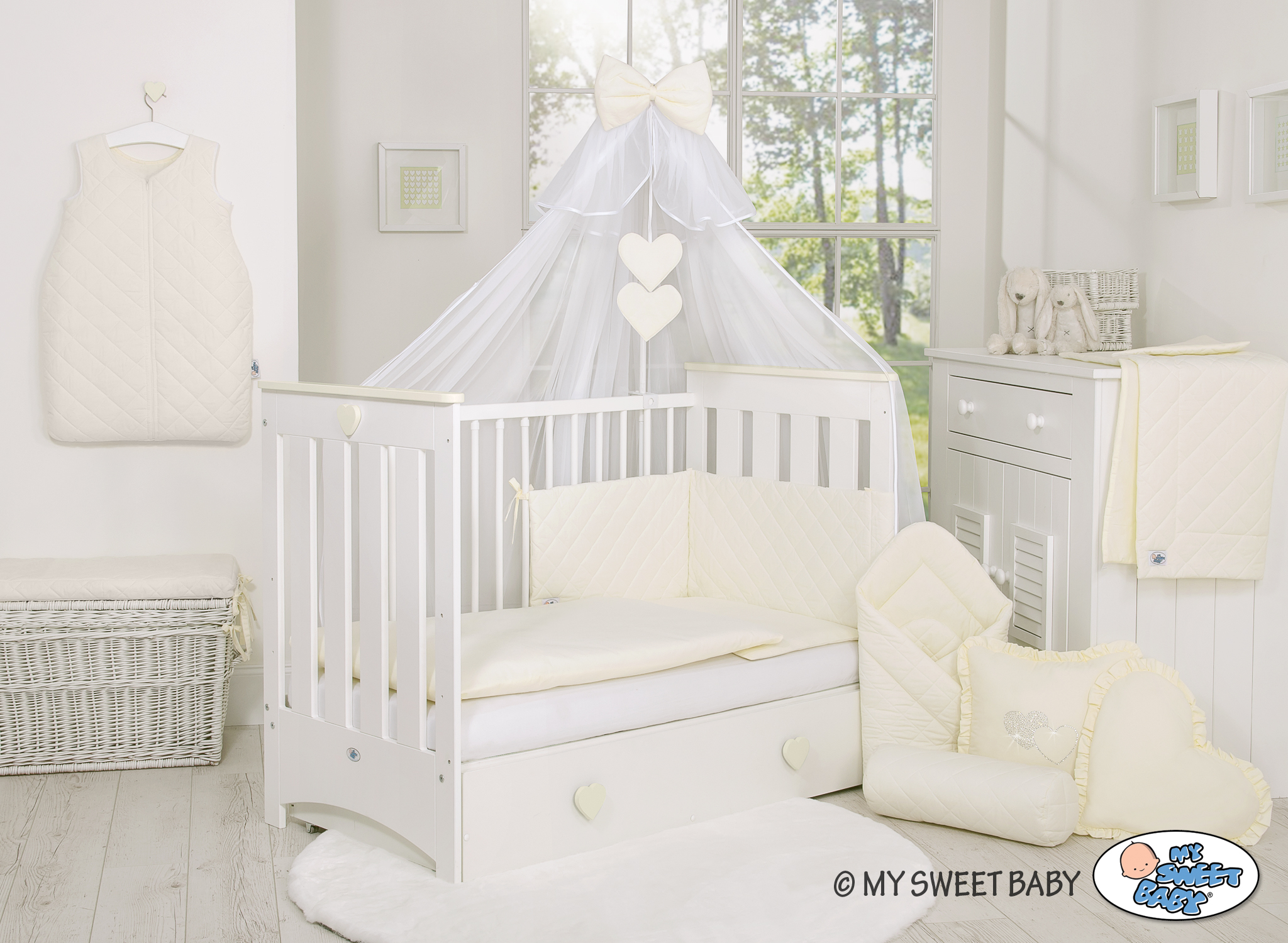 Stubenwagen » Bettwäsche für Babys » Babybett Bettwäsche PIK » Bettwäsche Set 5-tlg mit Moskitonetz » Bettwäsche Set 5-tlg mit Moskitonetz Bettumrandung gesteppt - creme