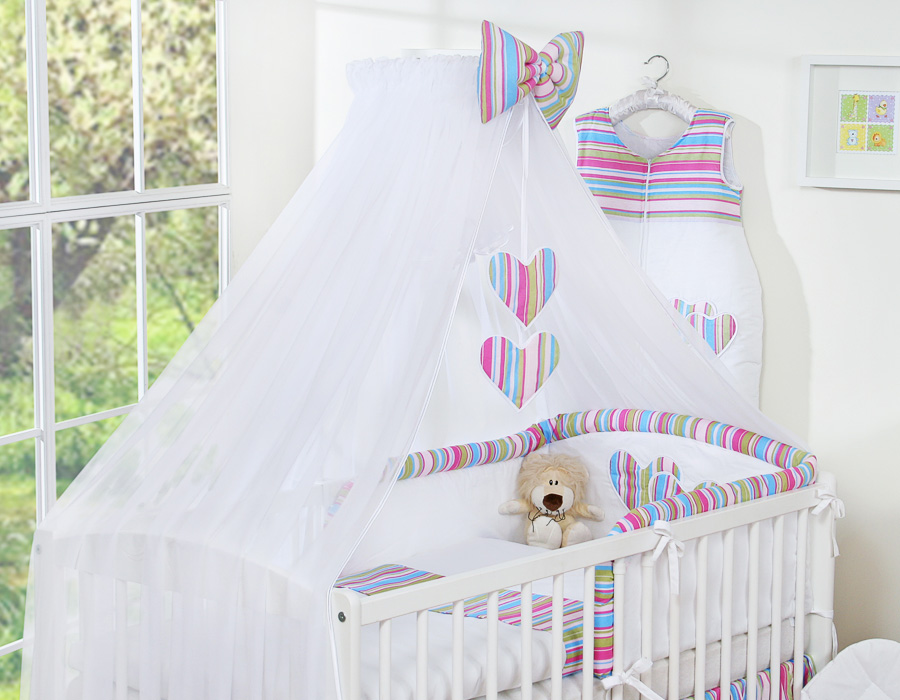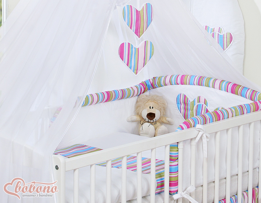 3. Kopfschutz mit Applikationen 35x188cm (Oberstoff 100% Baumwolle, Füllung 100% Polyester).