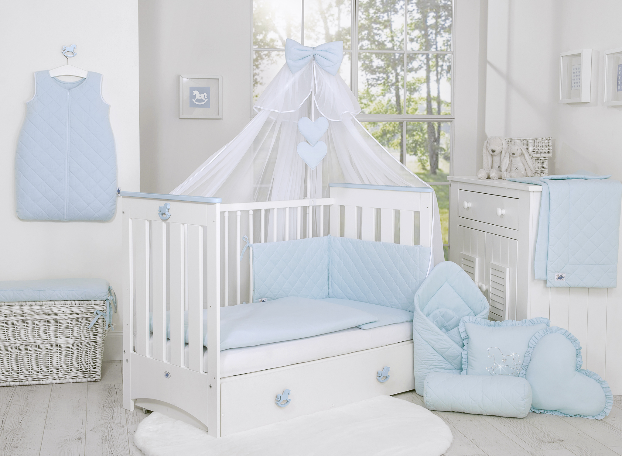 Stubenwagen » Bettwäsche für Babys » Babybett Bettwäsche PIK » Bettwäsche Set 5-tlg mit Moskitonetz » Bettwäsche Set 5-tlg mit Moskitonetz Kopfschutz gesteppt - blau