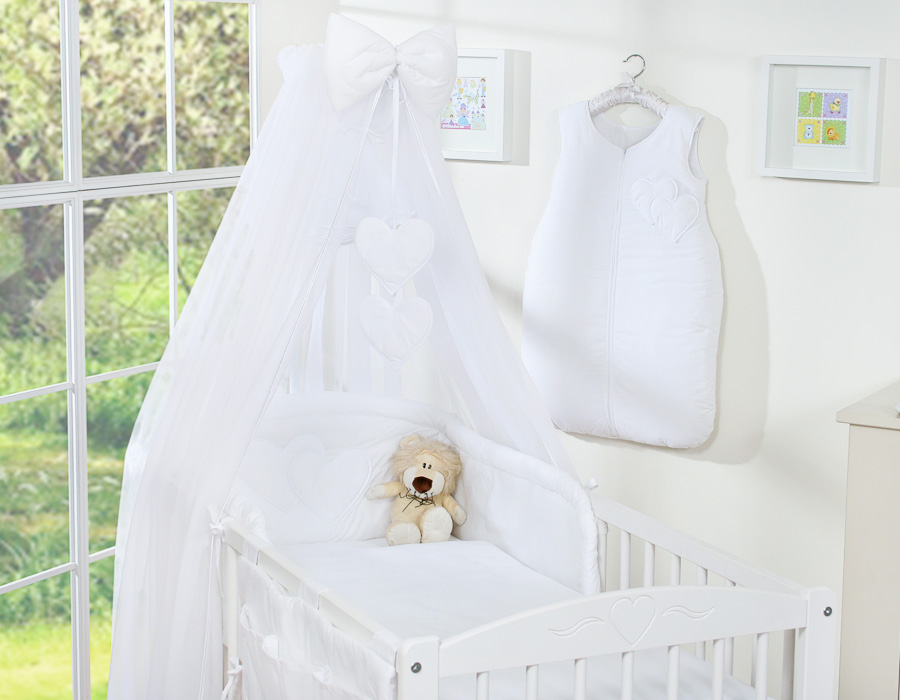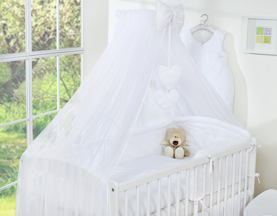 Stubenwagen » Bettwäsche für Babys » Bettwäsche für Babybett HERZEN » Bettwäsche Sets für Babybett 120cm » Bettwäsche Set 5-tlg mit Moskitonetz » Bettwäsche-Set 5-tlg mit Moskitonetz weiß