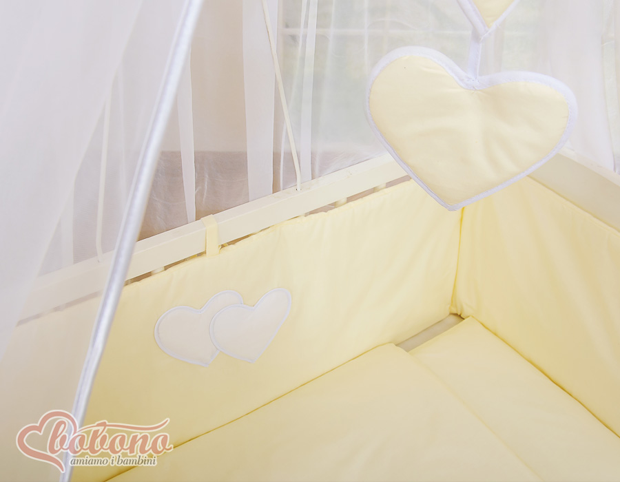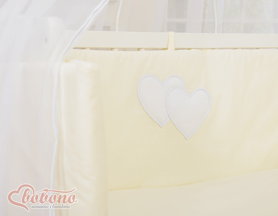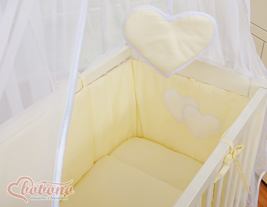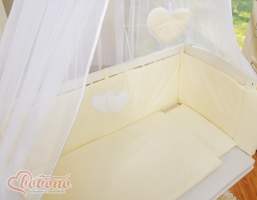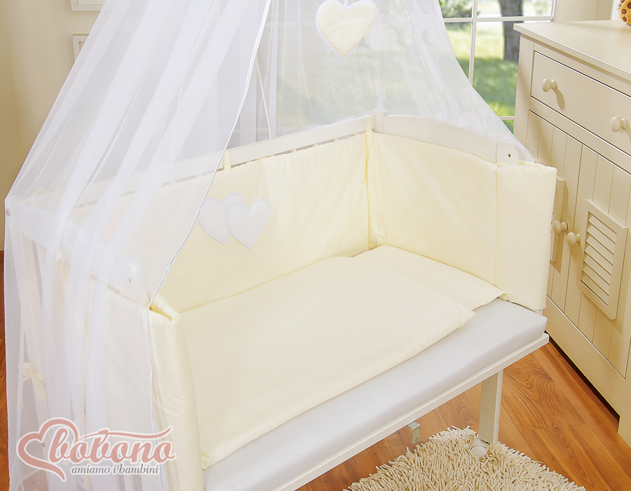 Bettwäsche Set 6tlg für Beistellbett FABIO - Hängende Herzen creme Wir präsentieren Ihnen ein wunderschönes Bettset für Beistellbettchen. Unsere Stoffe sind zertifiziert, für Baby´s unbedenklich. Das Set beinhaltet: