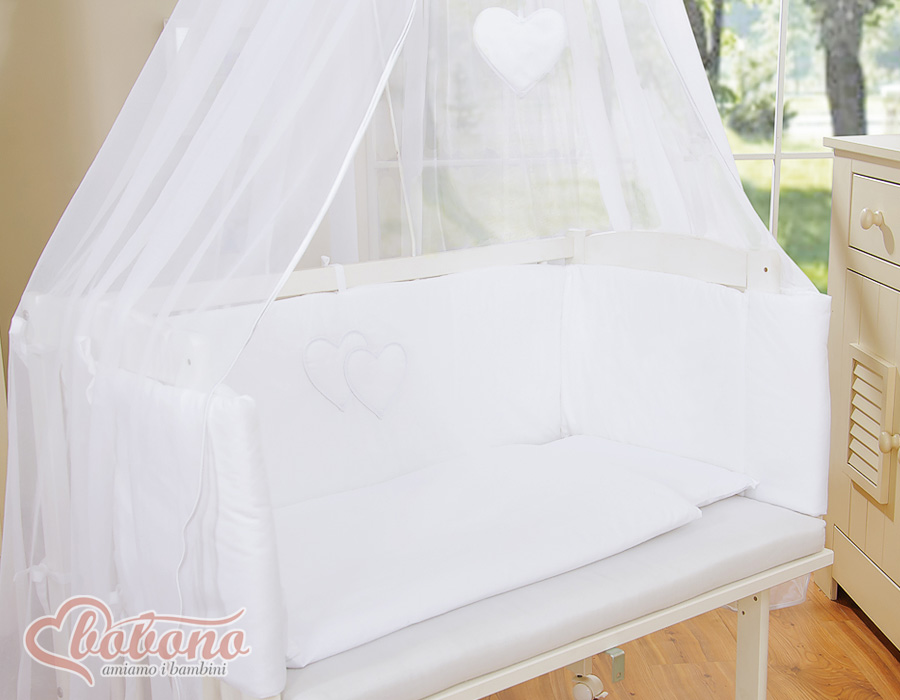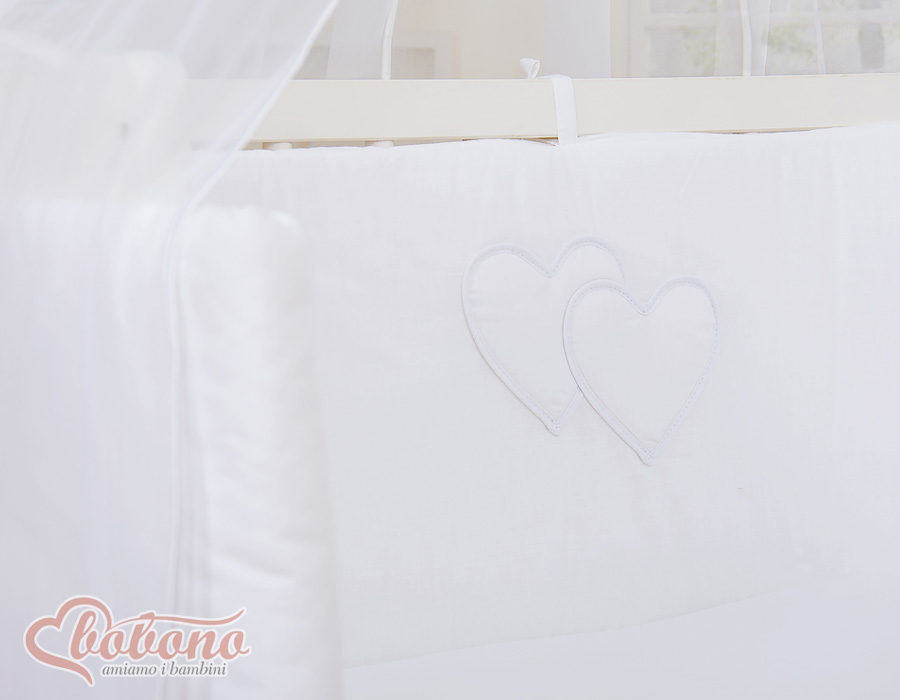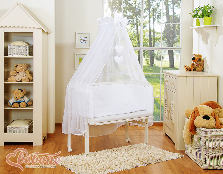 Bettwäsche Set 6tlg für Beistellbett FABIO - Hängende Herzen weiß Wir präsentieren Ihnen ein wunderschönes Bettset für Beistellbettchen. Unsere Stoffe sind zertifiziert, für Baby´s unbedenklich.