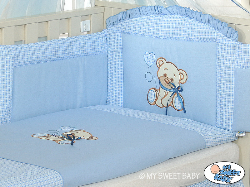 Stubenwagen » Bettwäsche für Babys » Bettwäsche für Babybett BÄR MIT SCHLEIFE » Bettwäsche Sets für Babybett 120cm » Bettwäsche Set 3-tlg » Bettwäsche Set für Babybett 3-tlg - Bär mit Schleife blau
