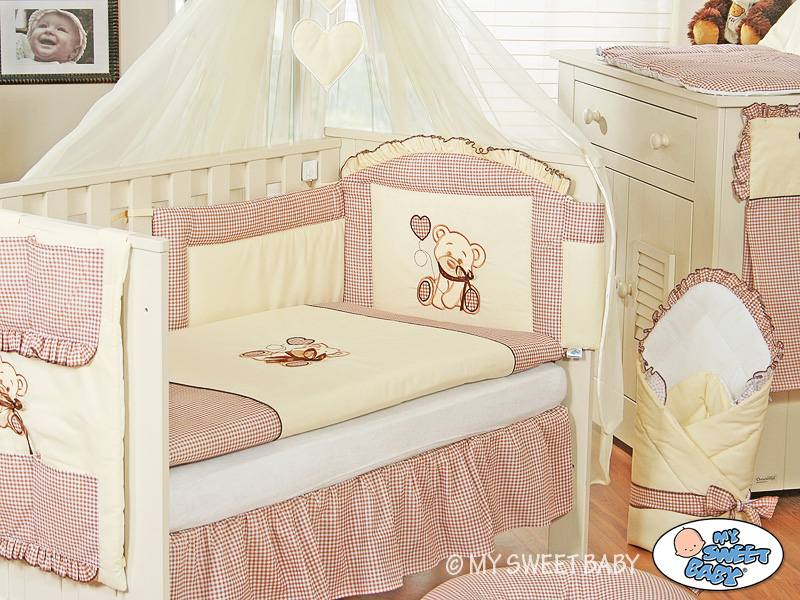 Stubenwagen » Bettwäsche für Babys » Bettwäsche für Babybett BÄR MIT SCHLEIFE » Bettwäsche Sets für Babybett 120cm » Bettwäsche Set 3-tlg » Bettwäsche Set für Babybett 3-tlg - Bär mit Schleife braun