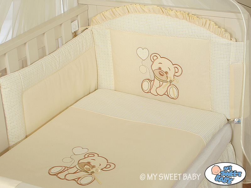 Stubenwagen » Bettwäsche für Babys » Bettwäsche für Babybett BÄR MIT SCHLEIFE » Bettwäsche Sets für Babybett 120cm » Bettwäsche Set 3-tlg » Bettwäsche Set für Babybett 3-tlg - Bär mit Schleife creme