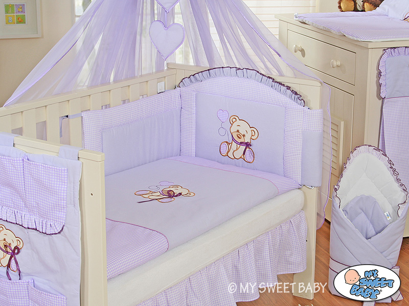 Stubenwagen » Bettwäsche für Babys » Bettwäsche für Babybett BÄR MIT SCHLEIFE » Bettwäsche Sets für Babybett 120cm » Bettwäsche Set 3-tlg » Bettwäsche Set für Babybett 3-tlg - Bär mit Schleife lila