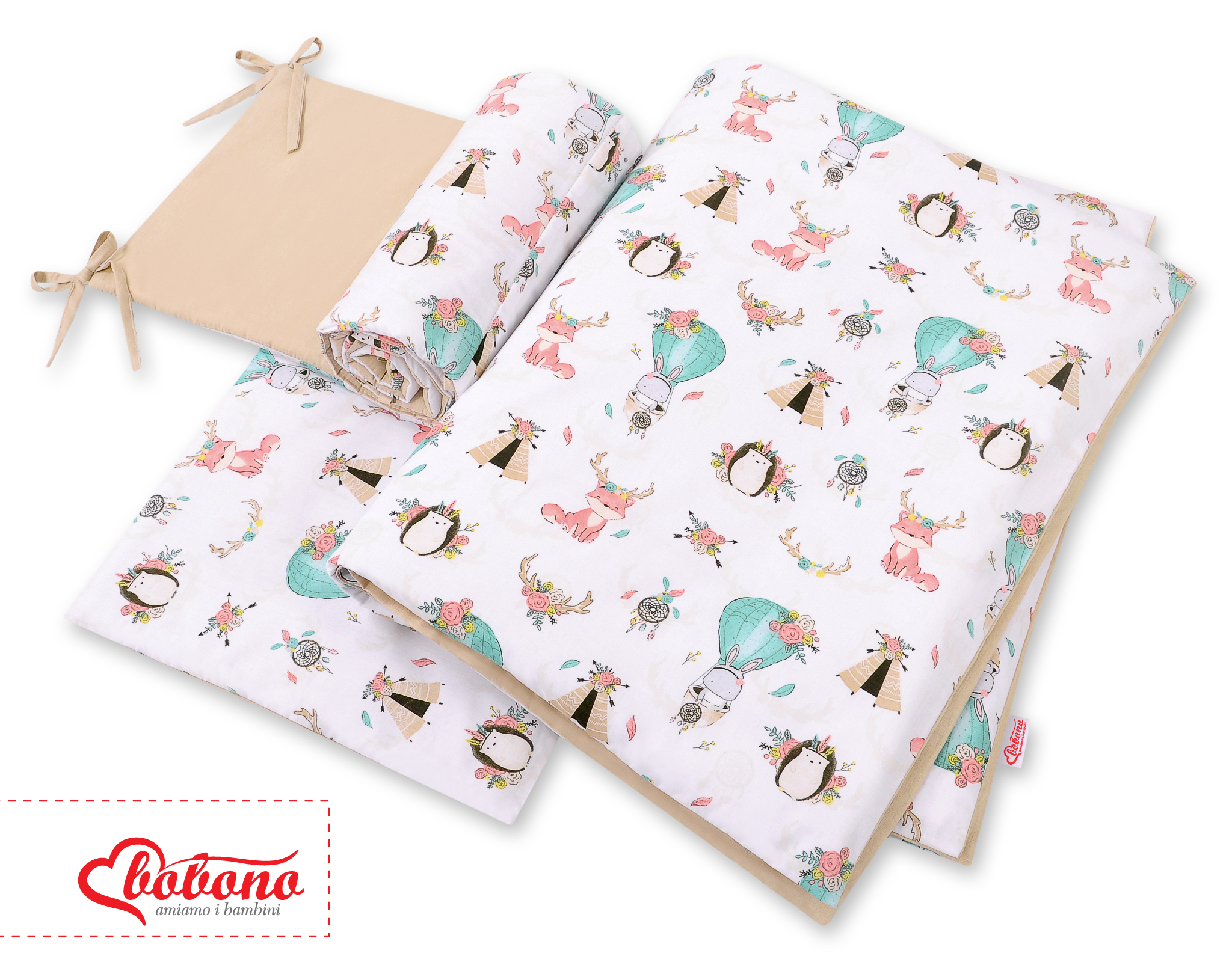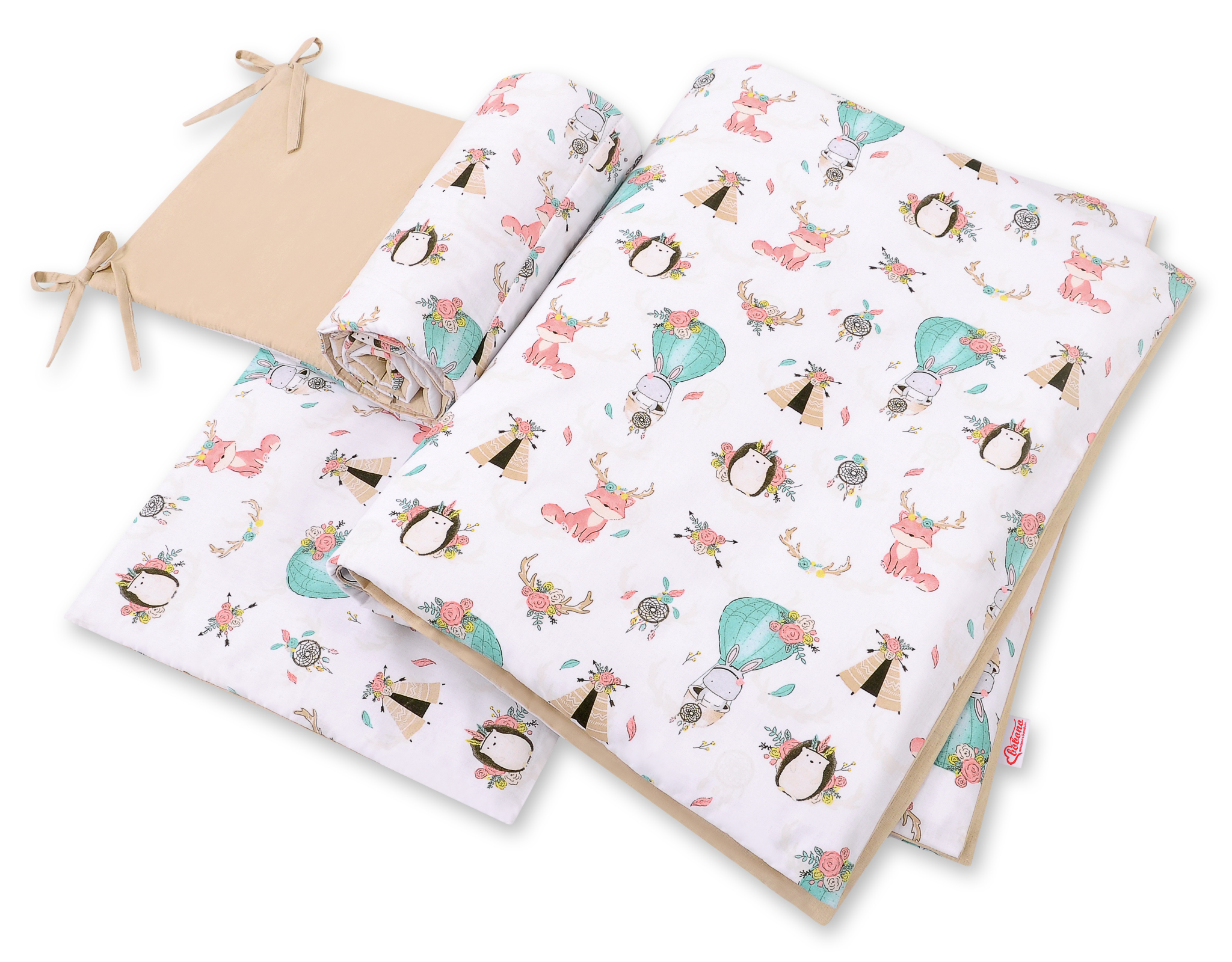 Bettwäsche Set für Babybett 3-tlg - doppelseitig - Füchse beige/beige
