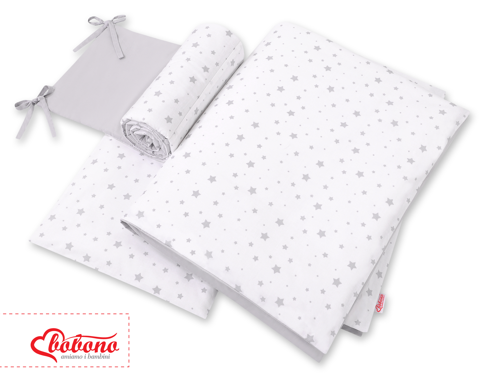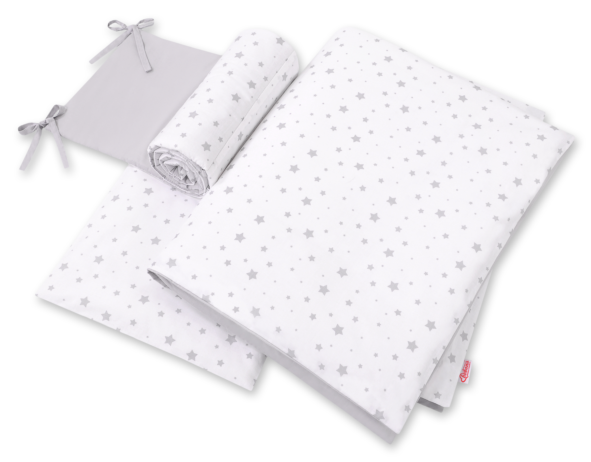 Stubenwagen » Bettwäsche für Babys » Bettwäsche für Babybett FUN & JOY » Bettwäsche Sets für Babybett 120cm » Bettwäsche Set 3-tlg » Bettwäsche Set für Babybett 3-tlg - doppelseitig - Mini Sternchen grau/grau