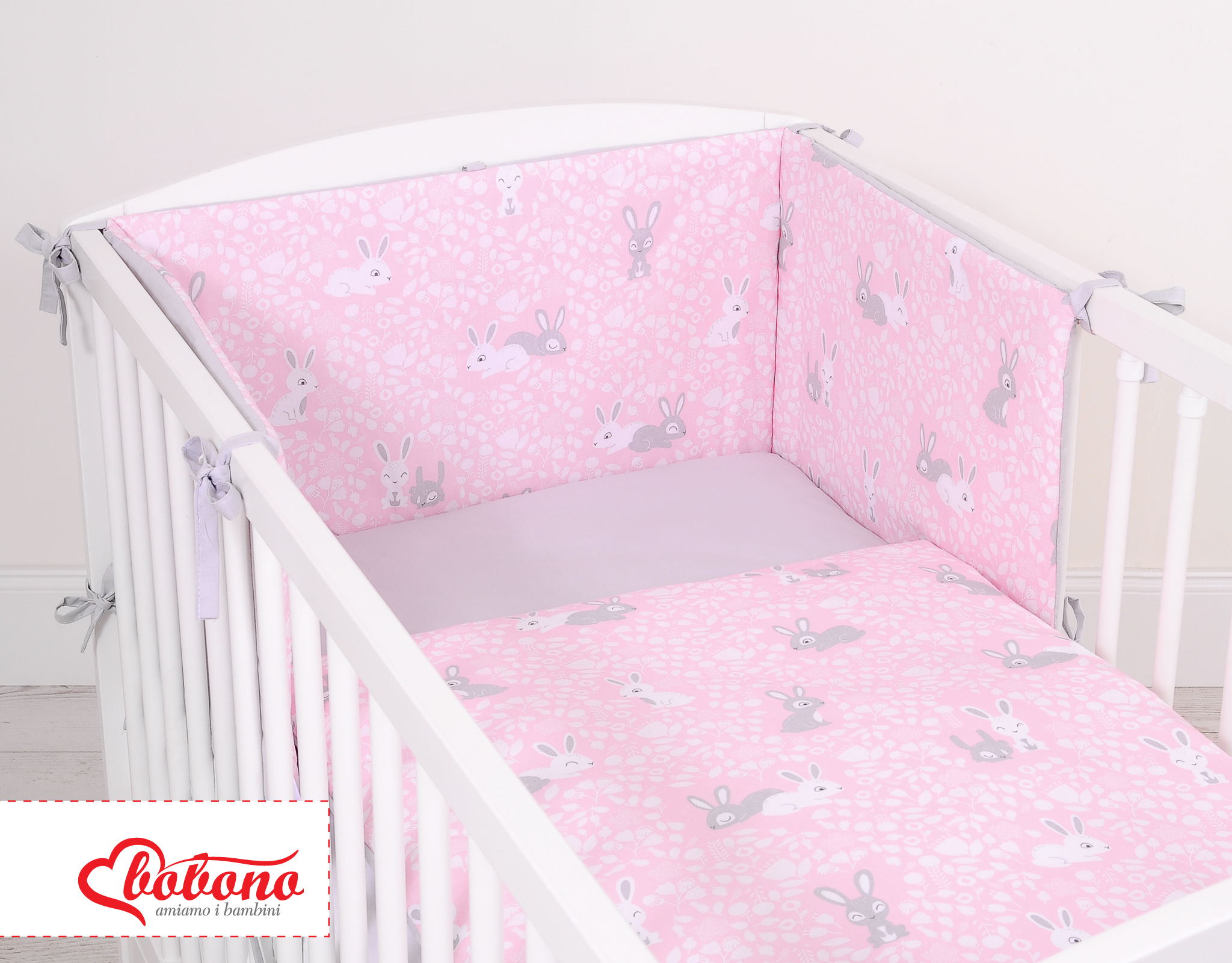 Bettwäsche Babybett Rosa Grau Hasen