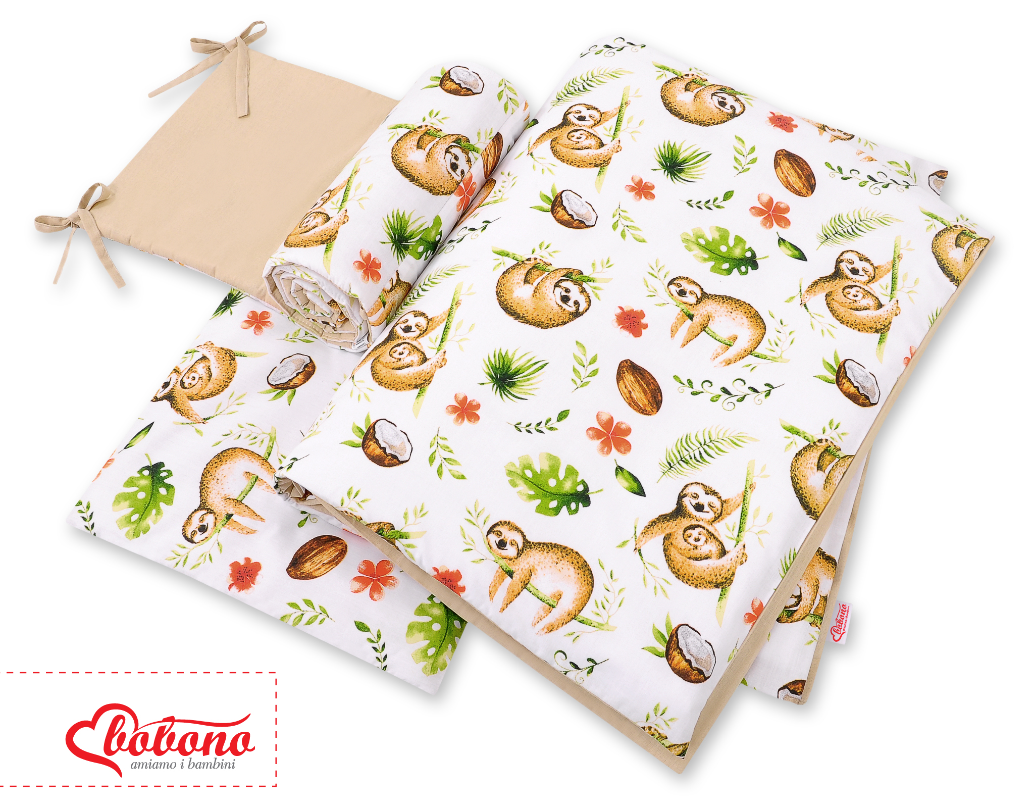 Bettwäsche Set für Babybett 3-tlg - doppelseitig - sloths beige/beige