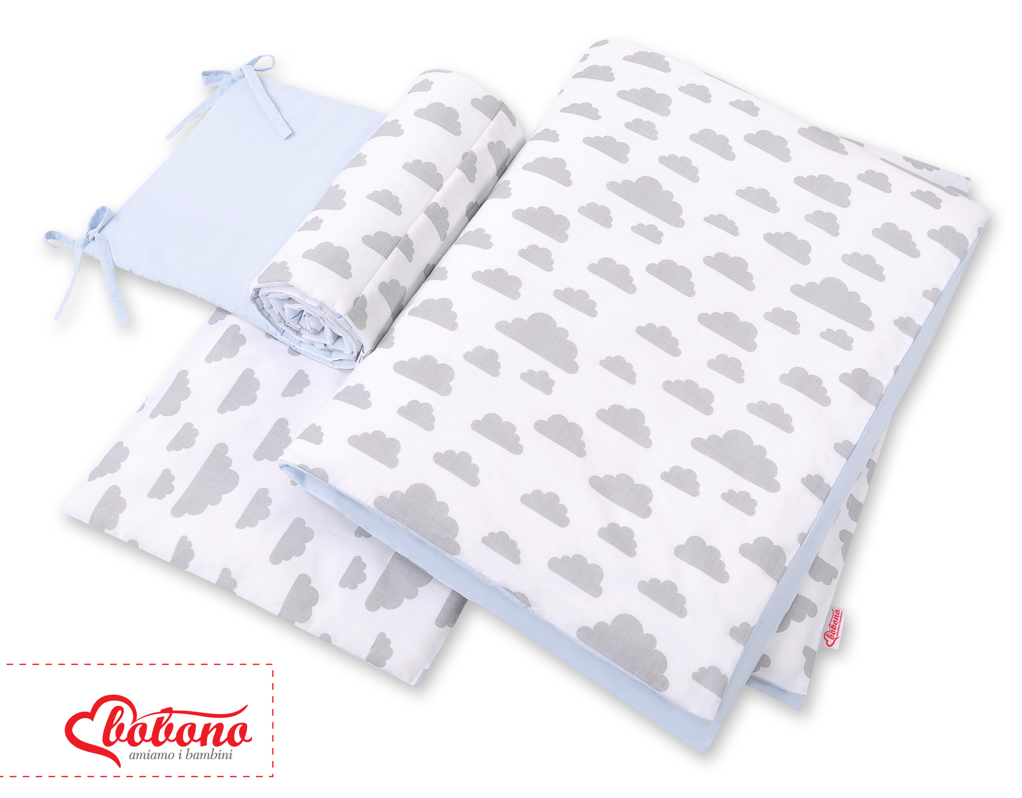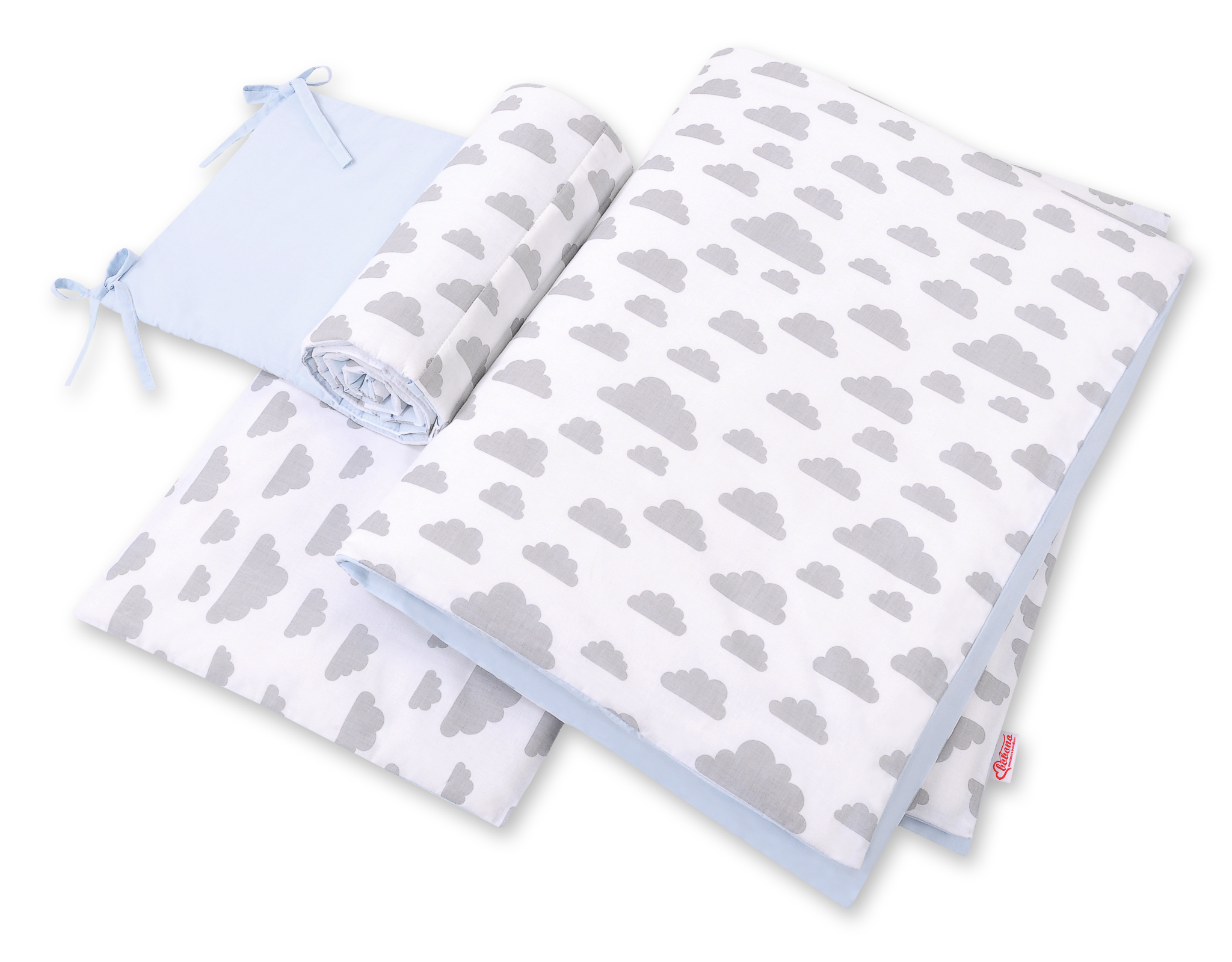 Bettwäsche Set für Babybett 3-tlg - doppelseitig - Wolken grau/blau