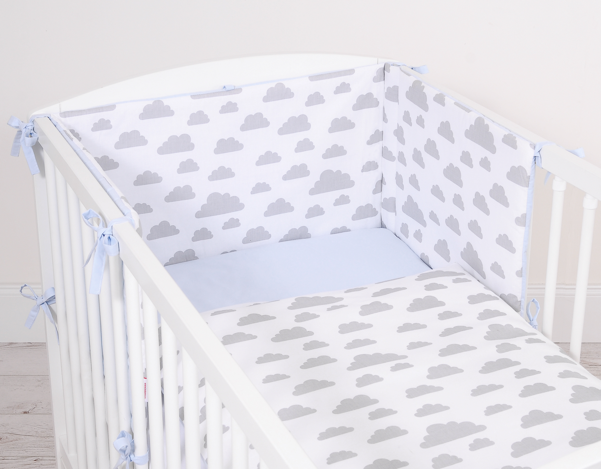 Grau Blau Wolken Doppelseitig Babybett Bettwäsche