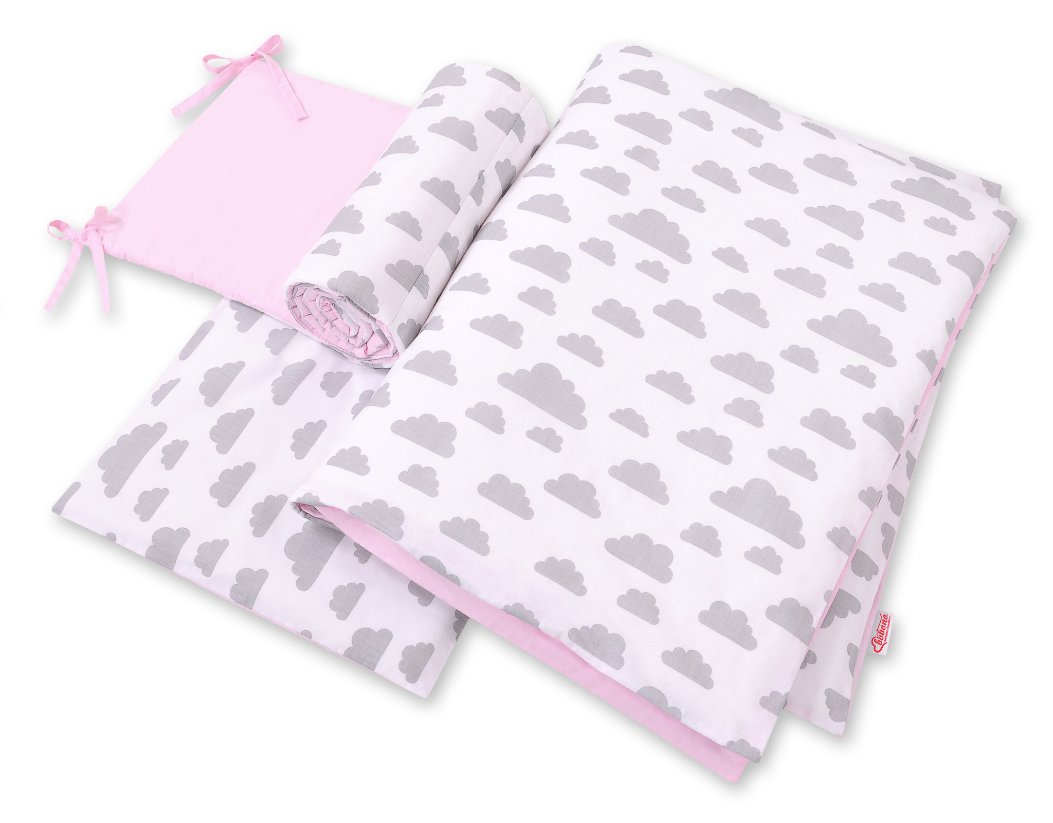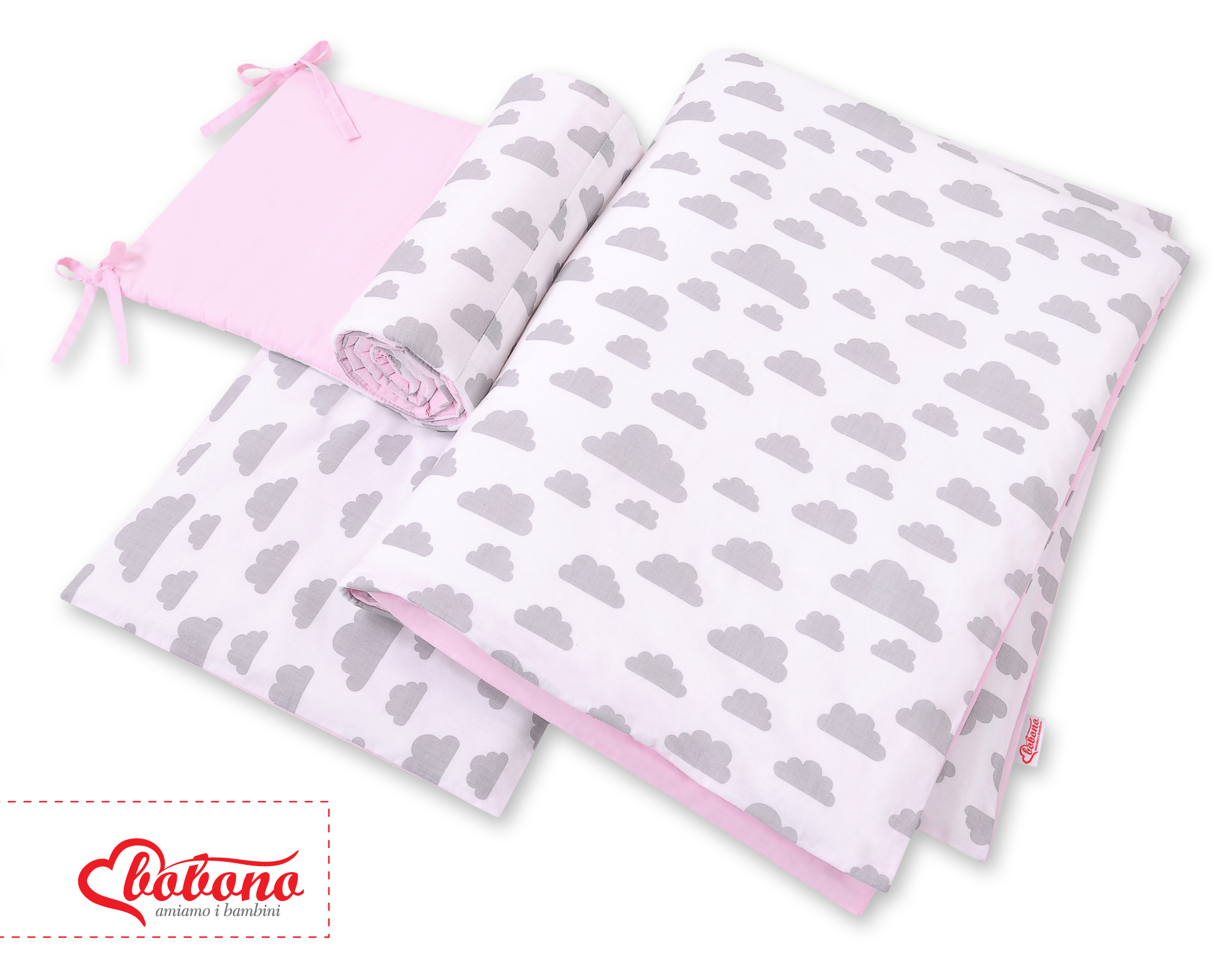 Bettwäsche Set für Babybett 3-tlg - doppelseitig - Wolken grau/rosa
