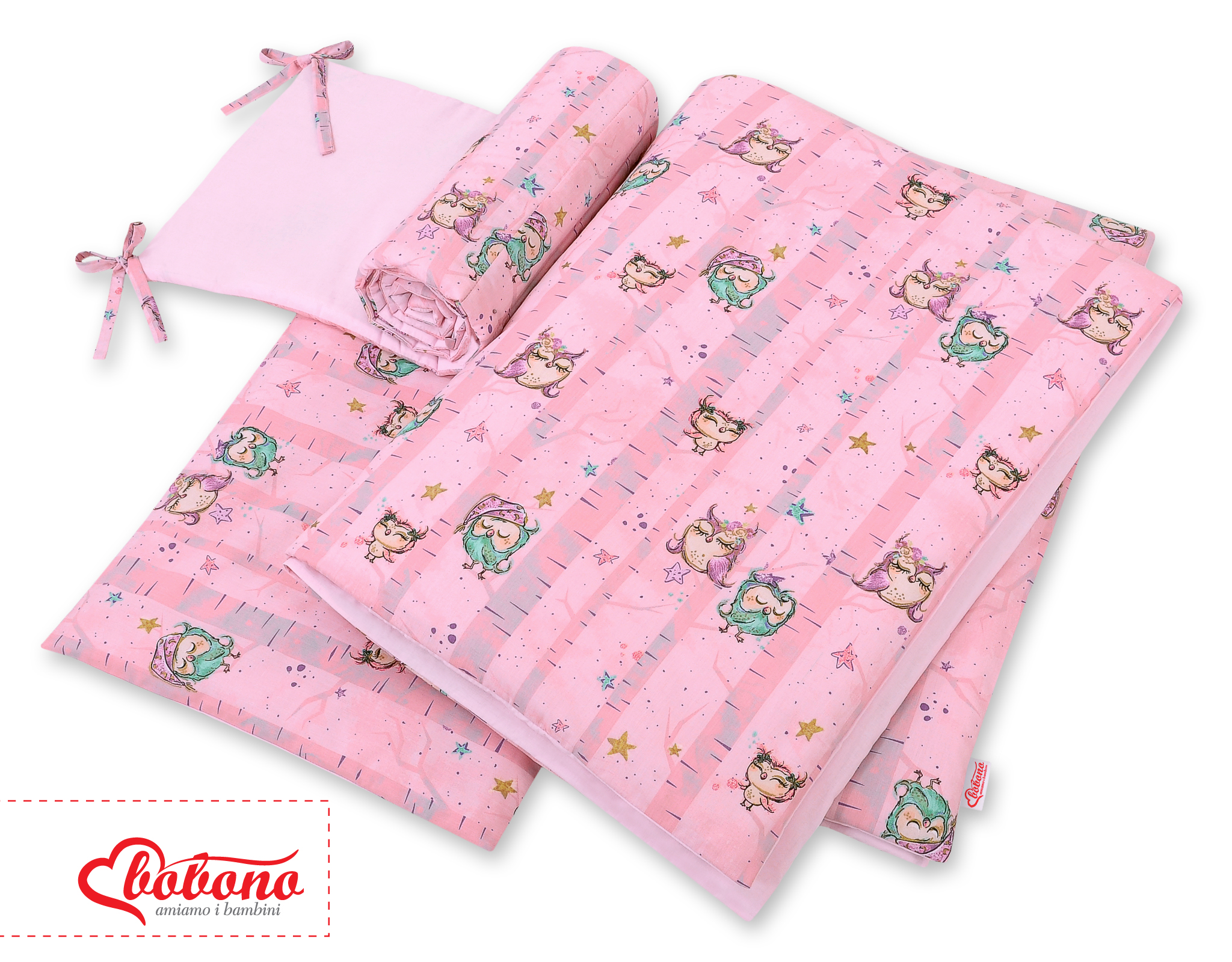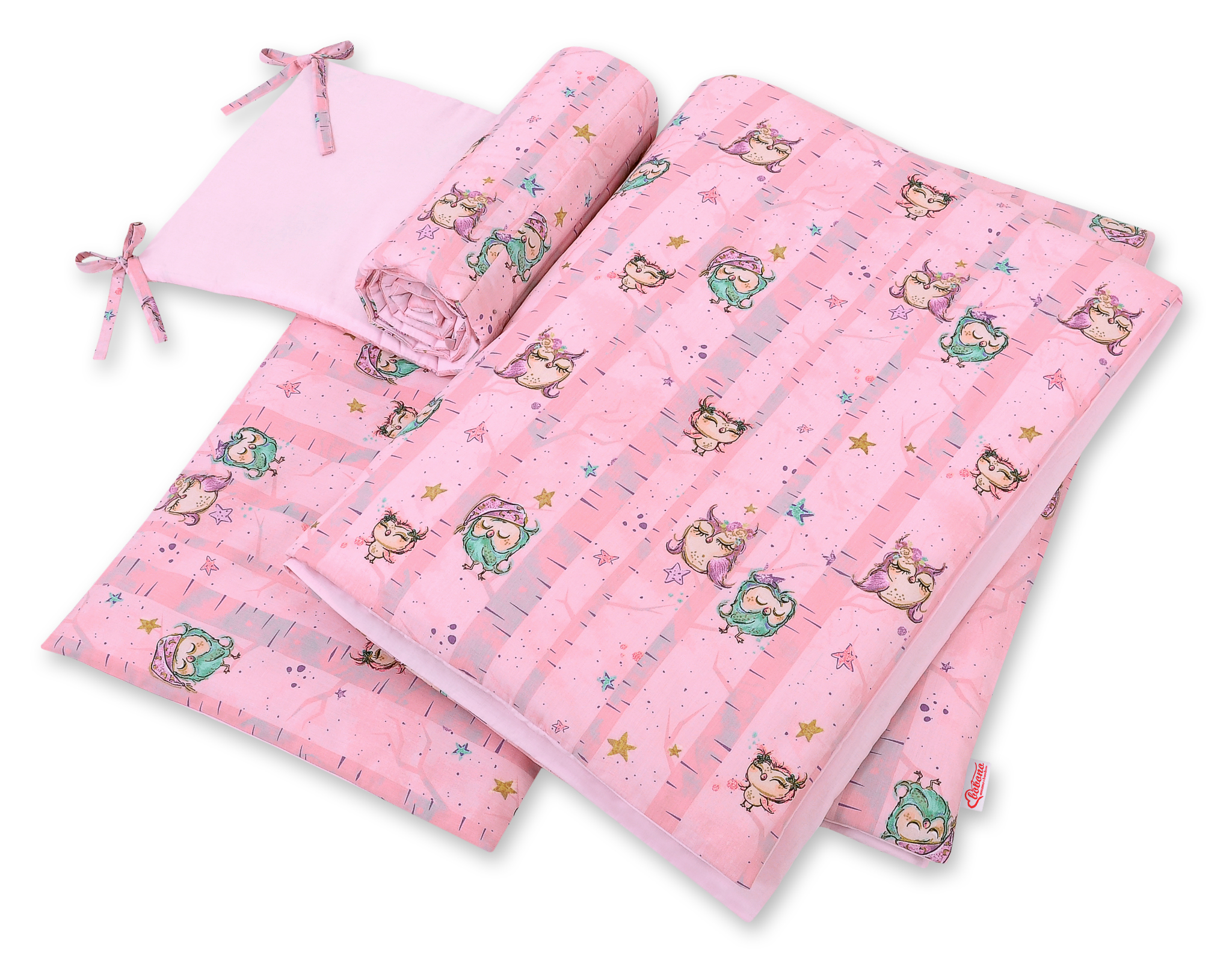 Bettwäsche Set für Babybett 3-tlg - Eulen rosa