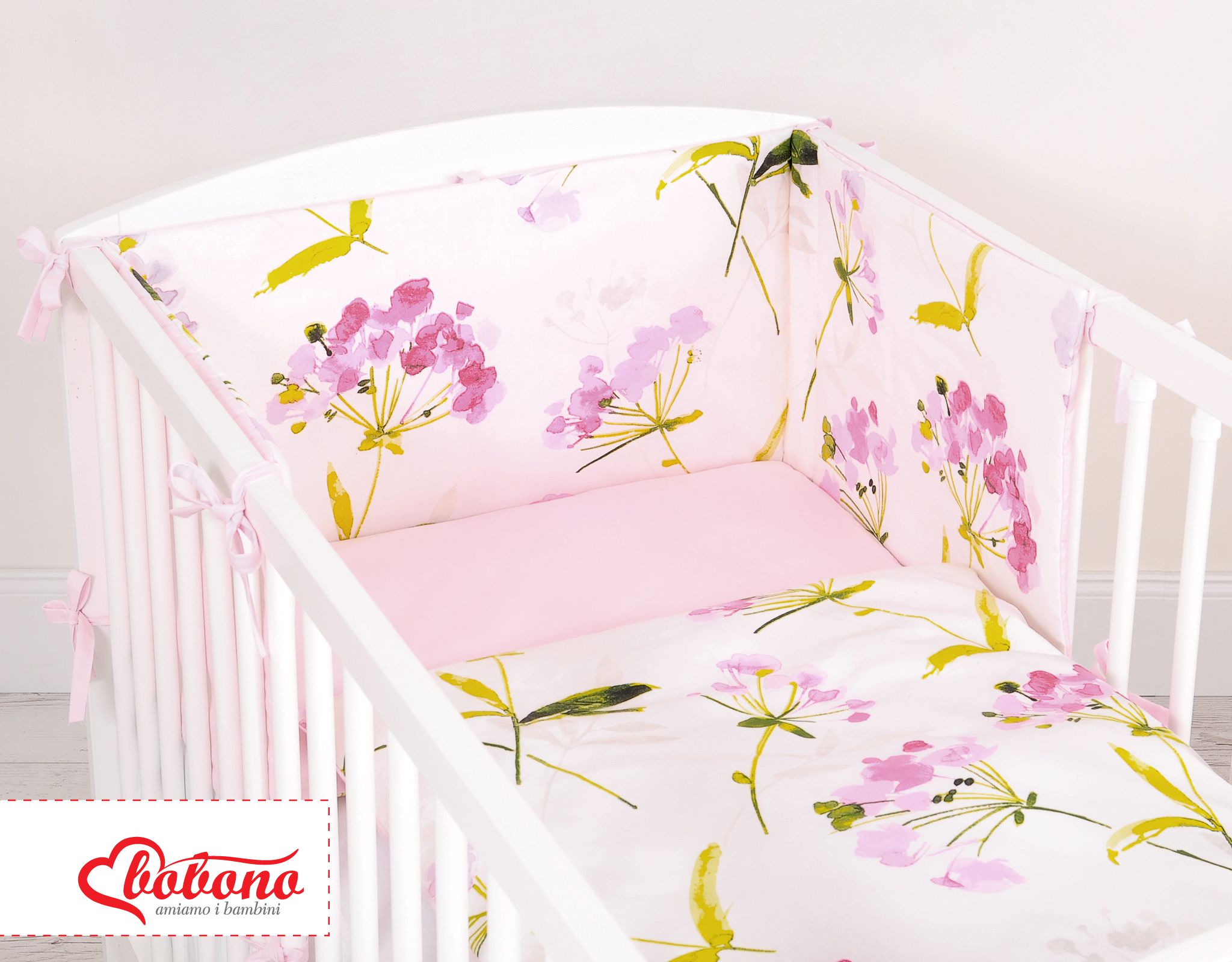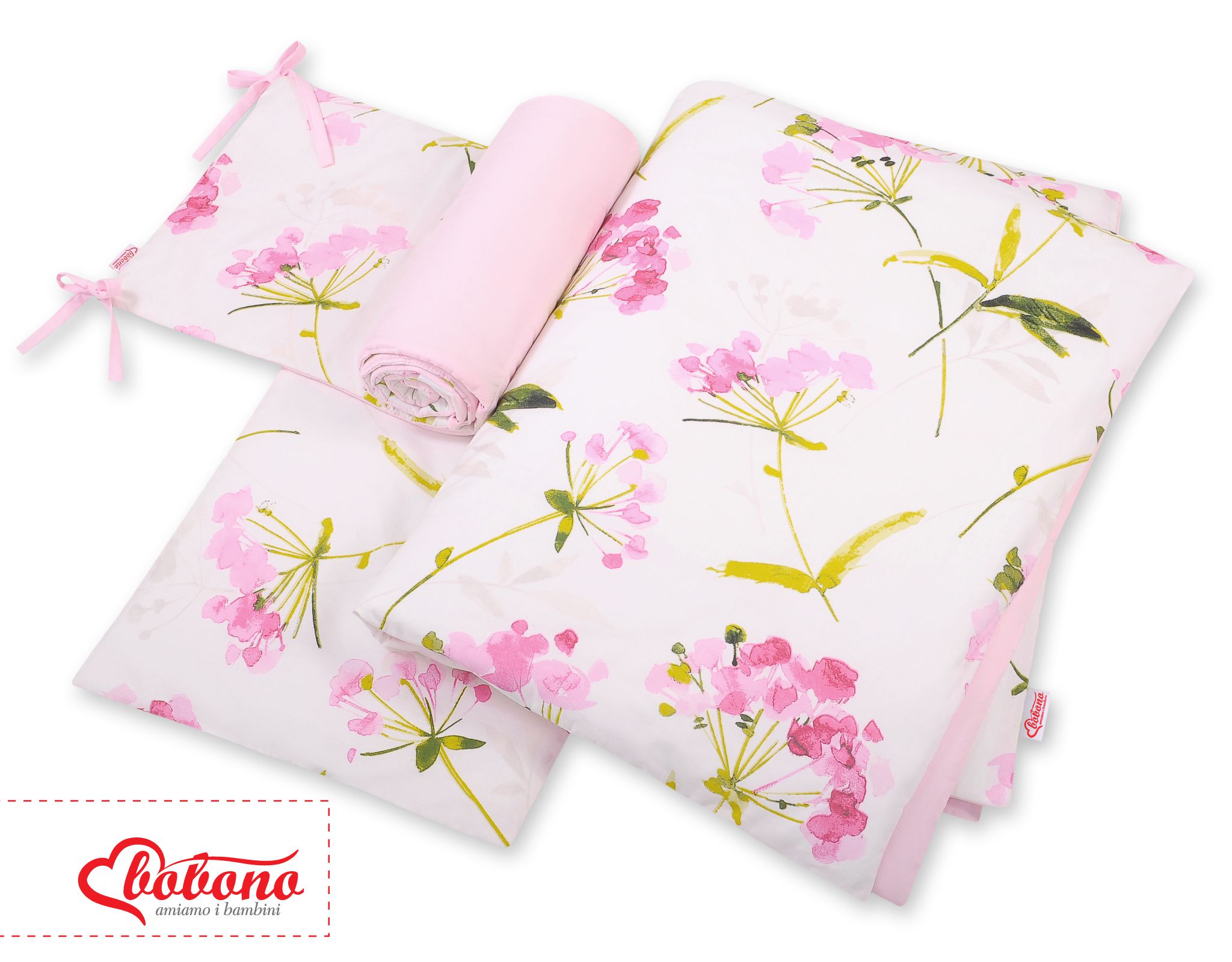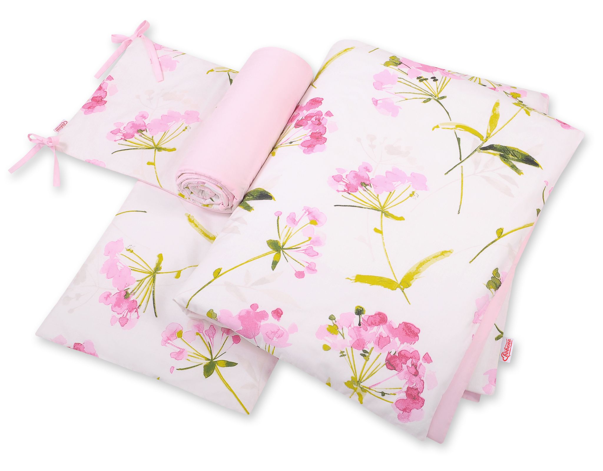 Stubenwagen » Bettwäsche für Babys » Bettwäsche für Babybett FUN & JOY » Bettwäsche Sets für Babybett 120cm » Bettwäsche Set 3-tlg » Bettwäsche Set für Babybett 3-tlg - flowers rosa