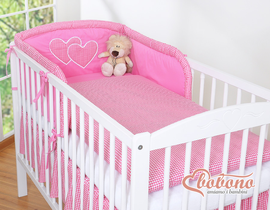 Bettwäsche Set für Babybett 3-tlg - Hängende Herzen dunkel rosa kariertBettwäsche Set für Babybett 3-tlg - Hängende Herzen dunkel rosa kariert