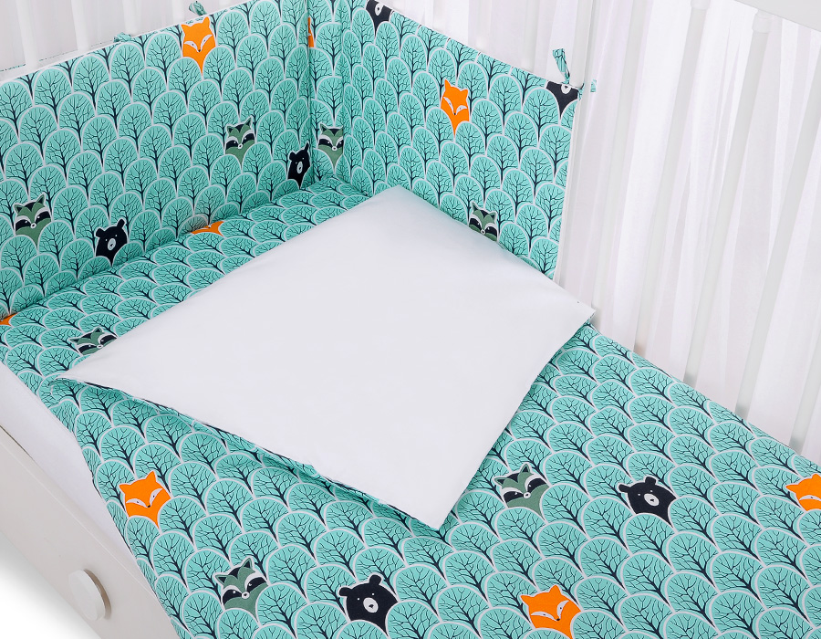 Bettwäsche Set für Babybett 3-tlg - Hasen - Minze Bäume
