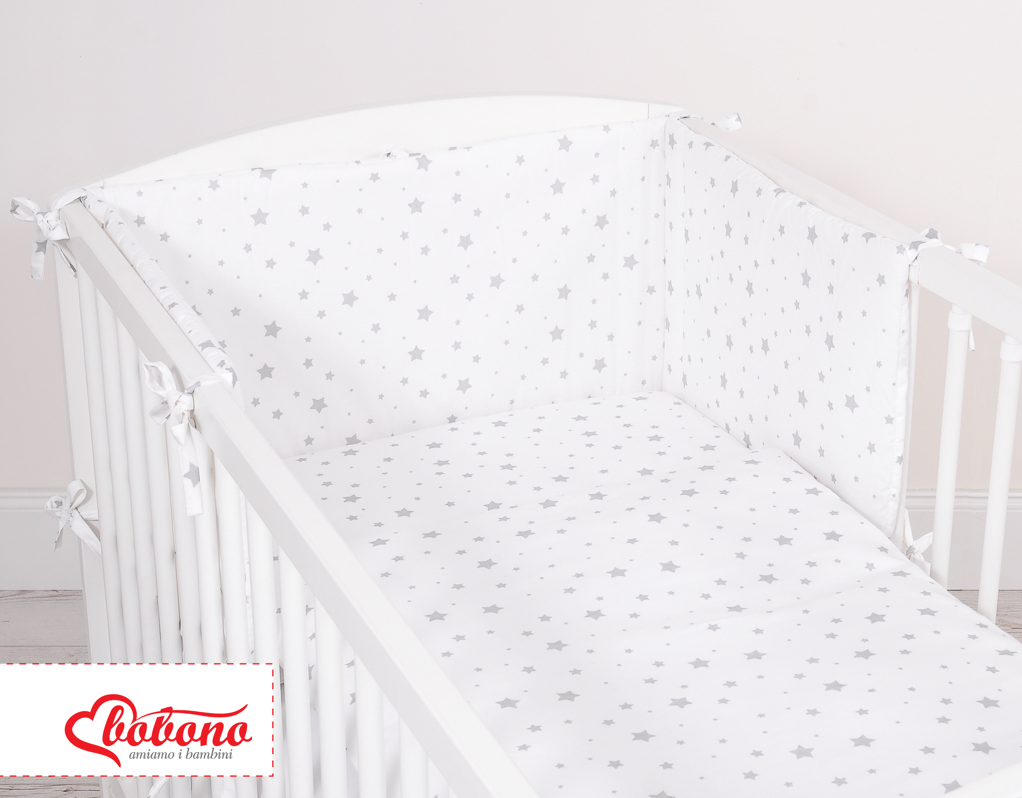 Stubenwagen » Bettwäsche für Babys » Bettwäsche für Babybett FUN & JOY » Bettwäsche Sets für Babybett 120cm » Bettwäsche Set 3-tlg » Bettwäsche Set für Babybett 3-tlg - Mini Sternchen grau