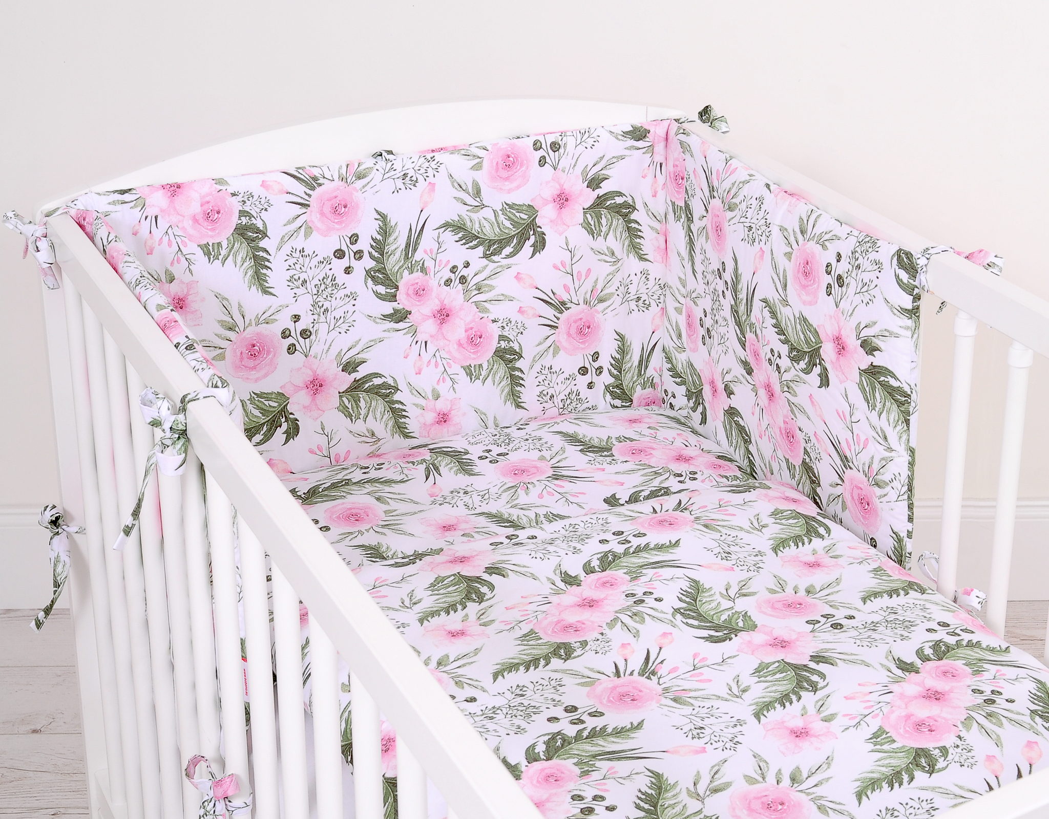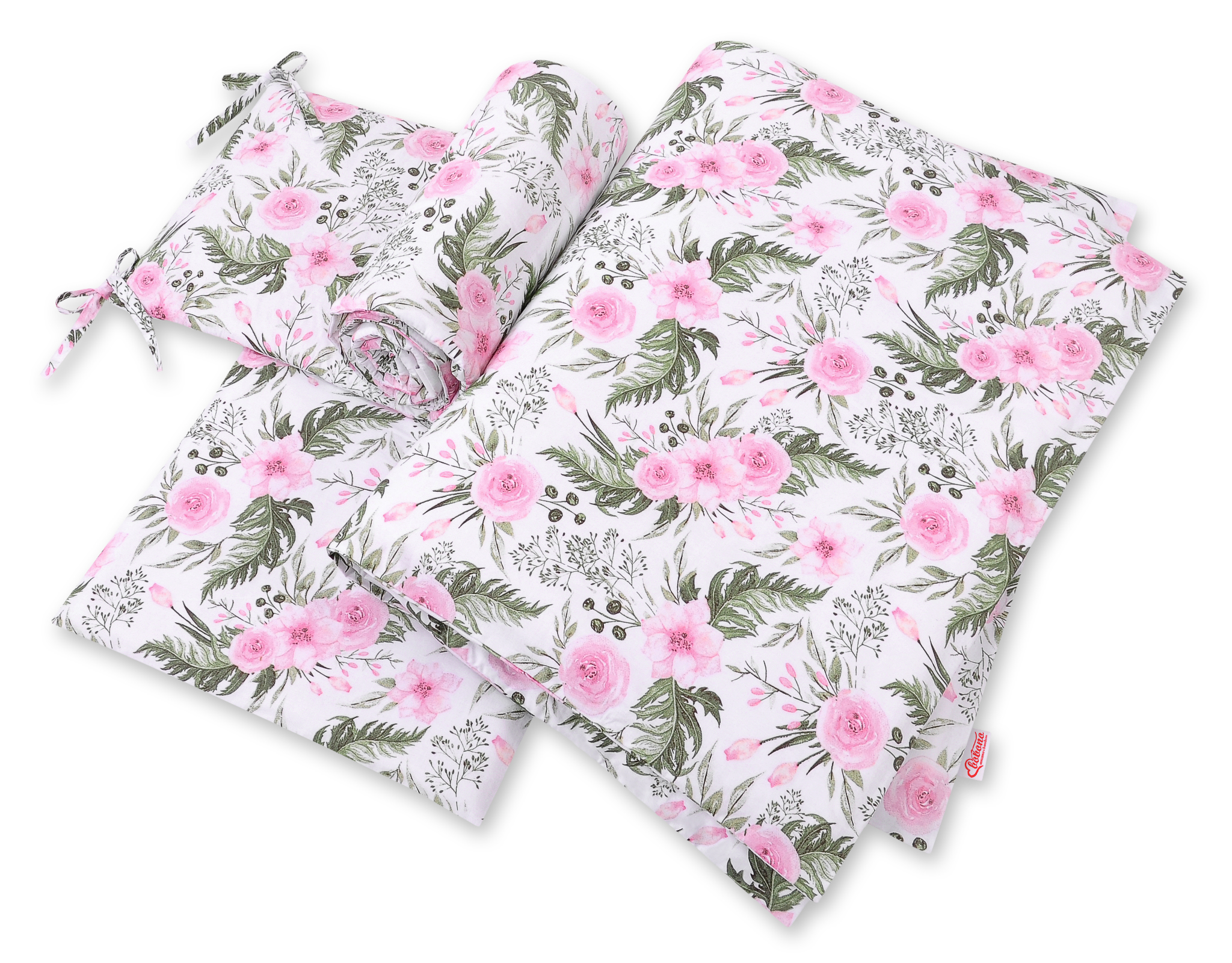 Stubenwagen » Bettwäsche für Babys » Bettwäsche für Babybett FUN & JOY » Bettwäsche Sets für Babybett 120cm » Bettwäsche Set 3-tlg » Bettwäsche Set für Babybett 3-tlg - rosa Blüten