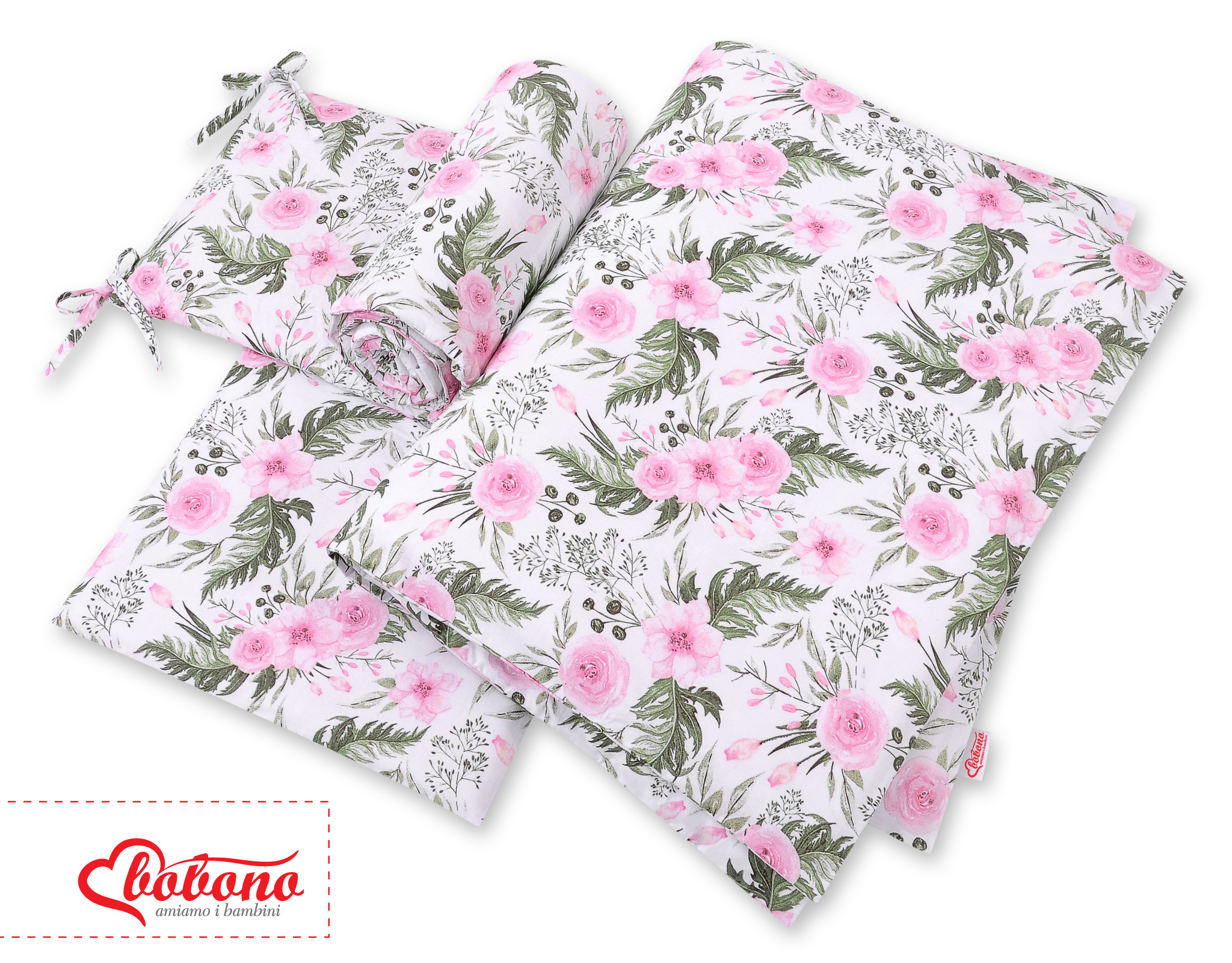 Bettwäsche Set für Babybett 3-tlg - rosa Blüten
