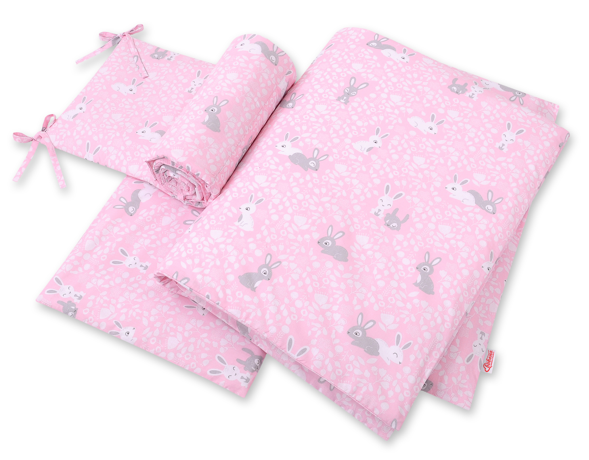 Stubenwagen » Bettwäsche für Babys » Bettwäsche für Babybett FUN & JOY » Bettwäsche Sets für Babybett 120cm » Bettwäsche Set 3-tlg » Bettwäsche Set für Babybett 3-tlg - rosa Hasen