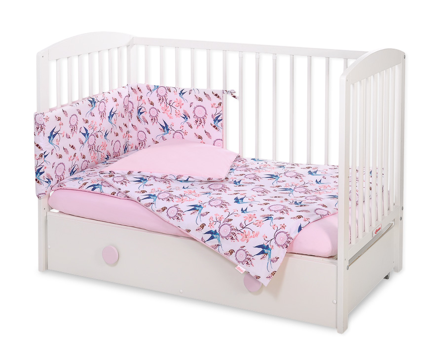 Bettwäsche Set für Babybett 3-tlg - Schwalben blau