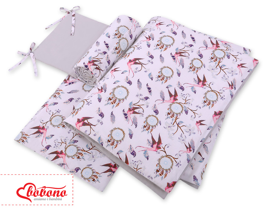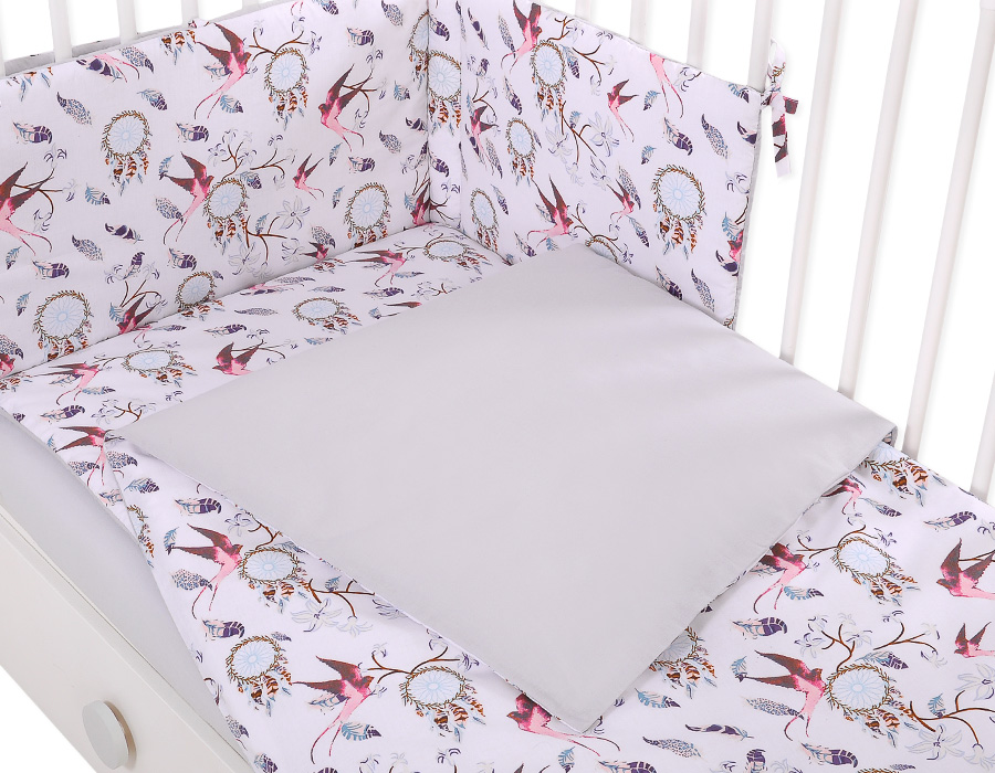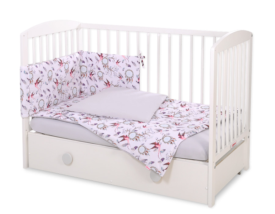 Bettwäsche Set für Babybett 3-tlg - Schwalben rosa
