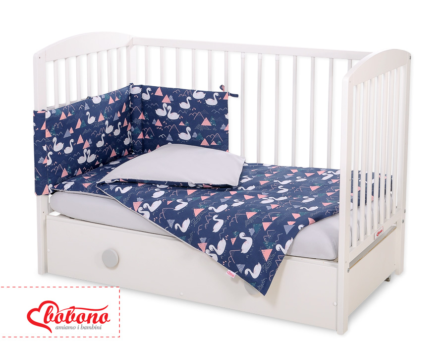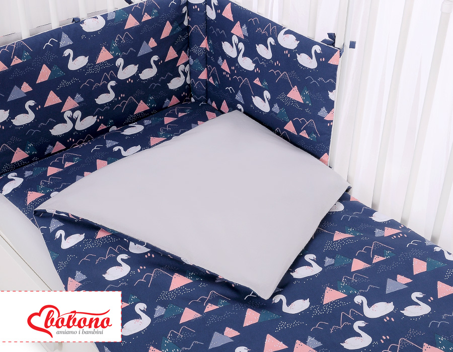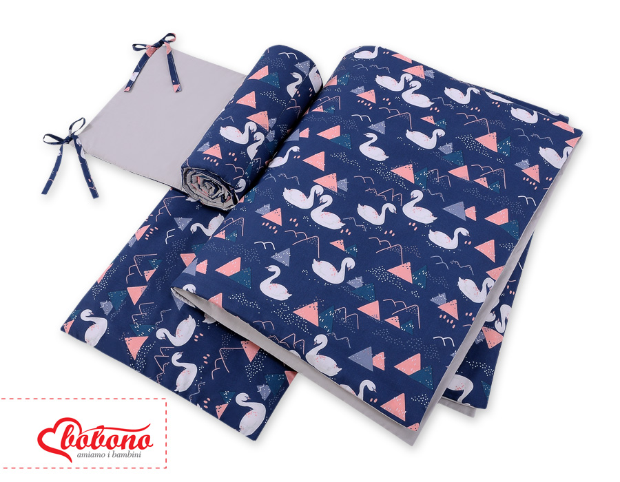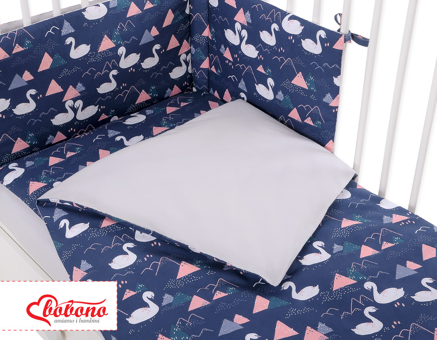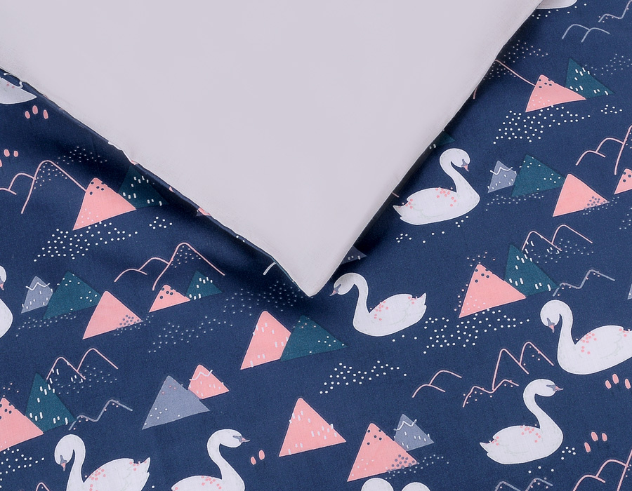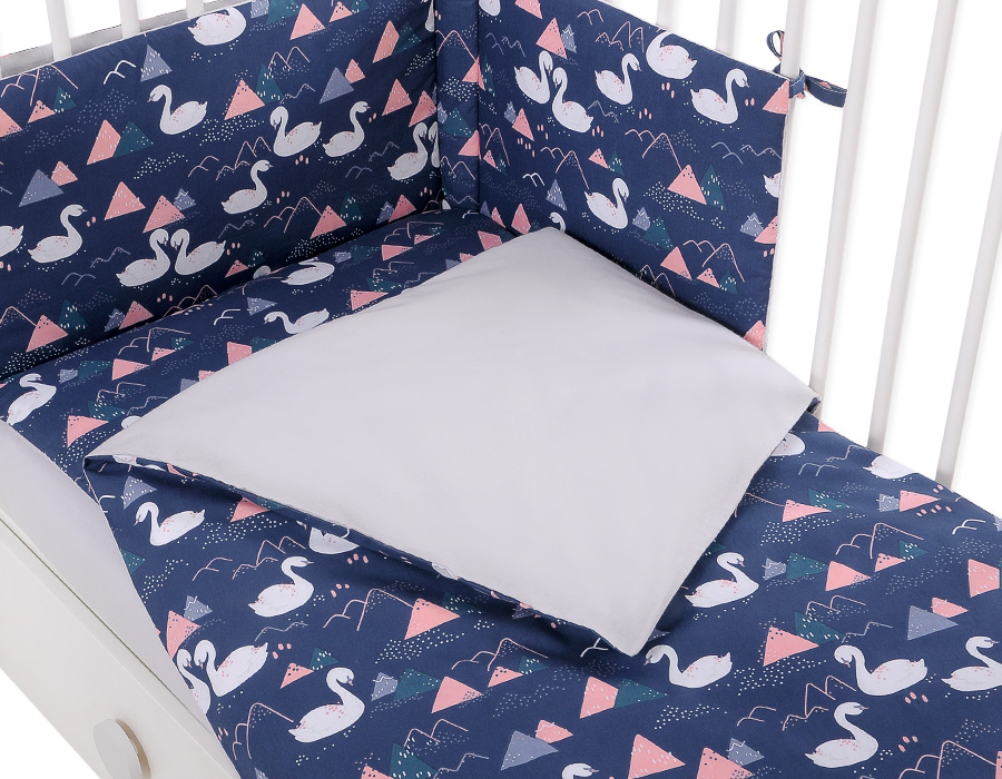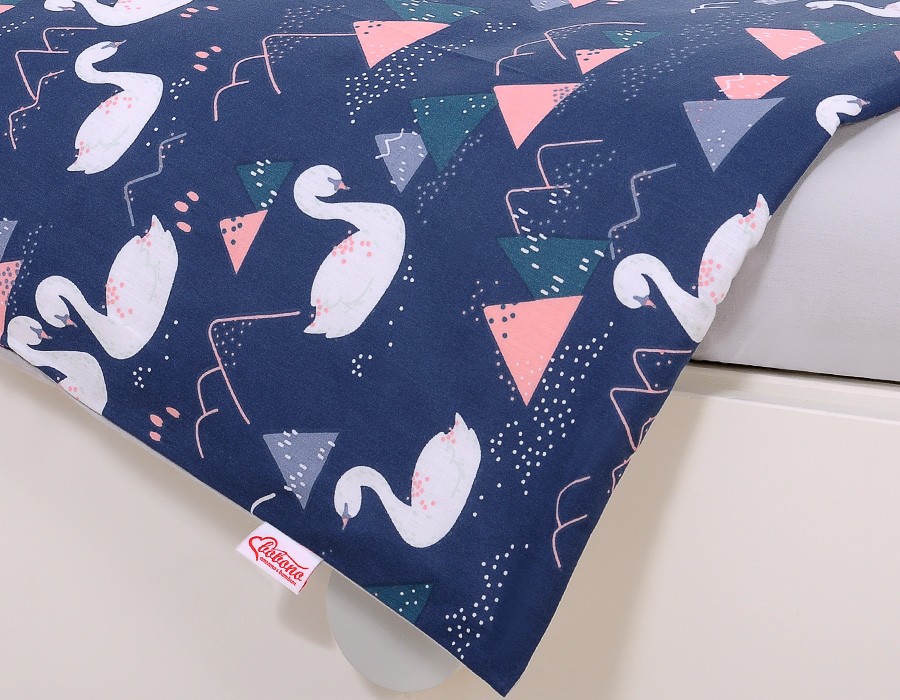 Bettwäsche Set für Babybett 3-tlg - Schwäne dunkelblau