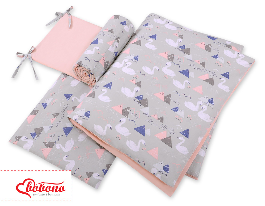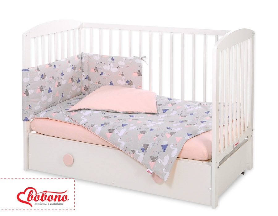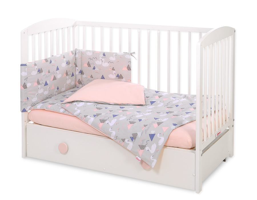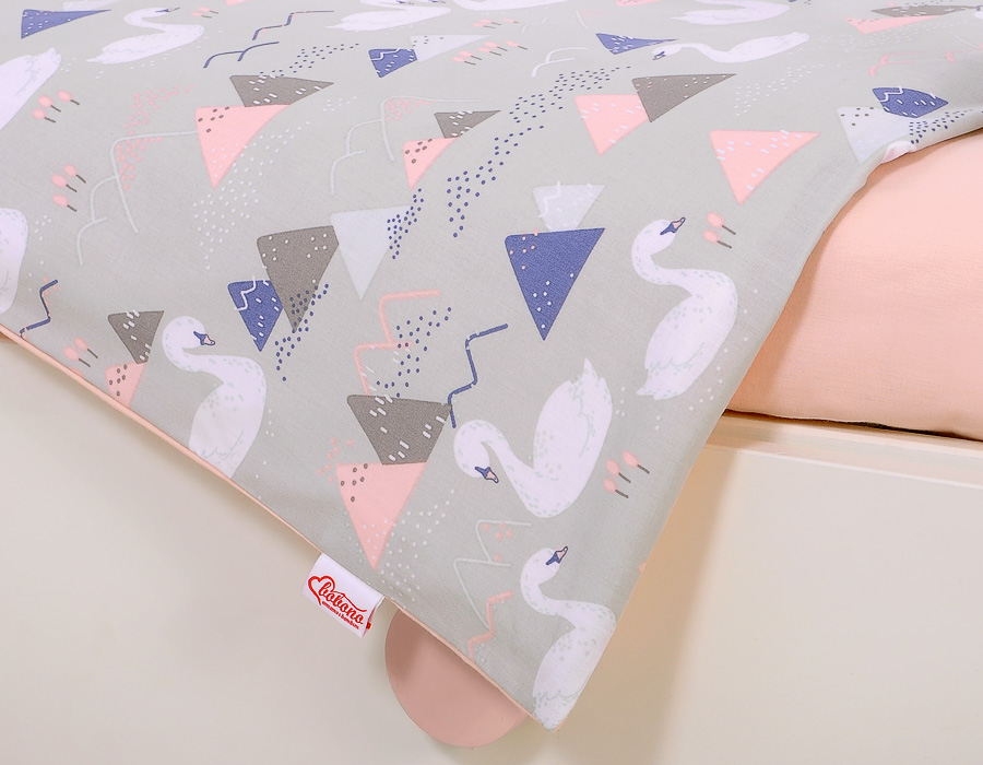 Bettwäsche Set für Babybett 3-tlg - Schwäne grau